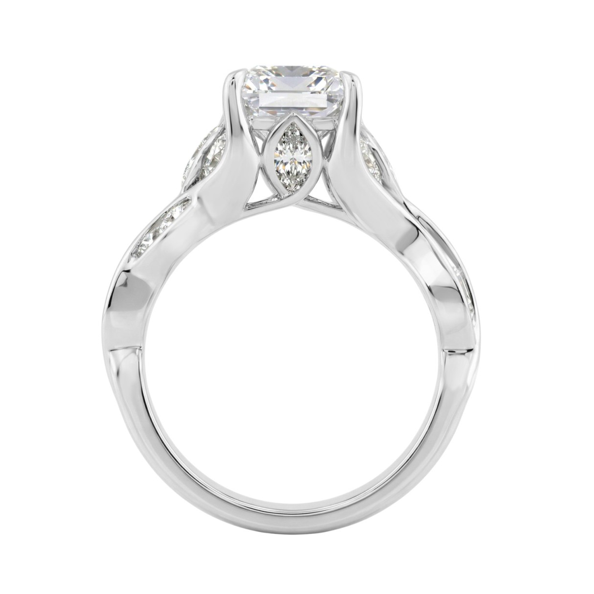 14K White Gold Radiant Cut Diamond Ring 4 1/5Ct With Marquise Side Stones Ladies Engagement Ring 3Ct Radiant Center Stone (Color F-G -Clarity Vs1/Vs2