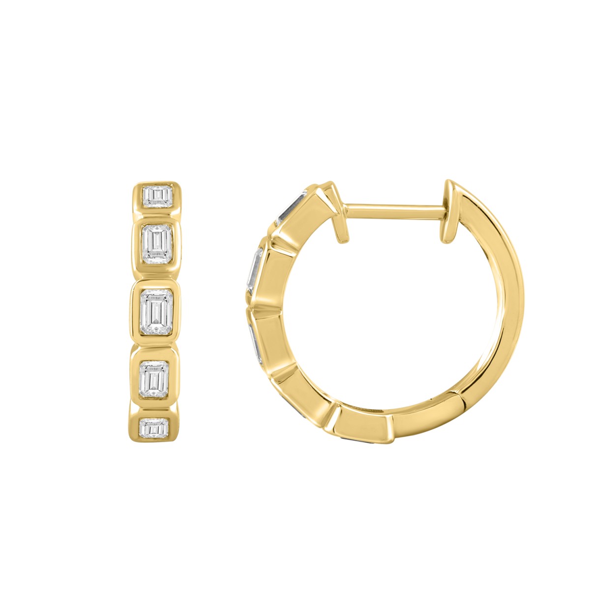 LADIES HOOP EARRINGS 1.25CT ROUND DIAMOND 14K YELLOW GOLD