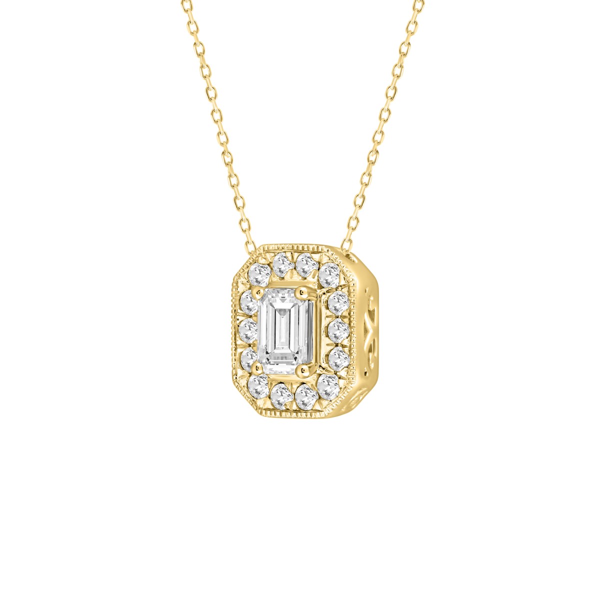14K YELLOW GOLD 1.00CT ROUND/EMERALD DIAMOND LADIES PENDANT (CENTER STONE EMERALD DIAMOND 3/4CT)