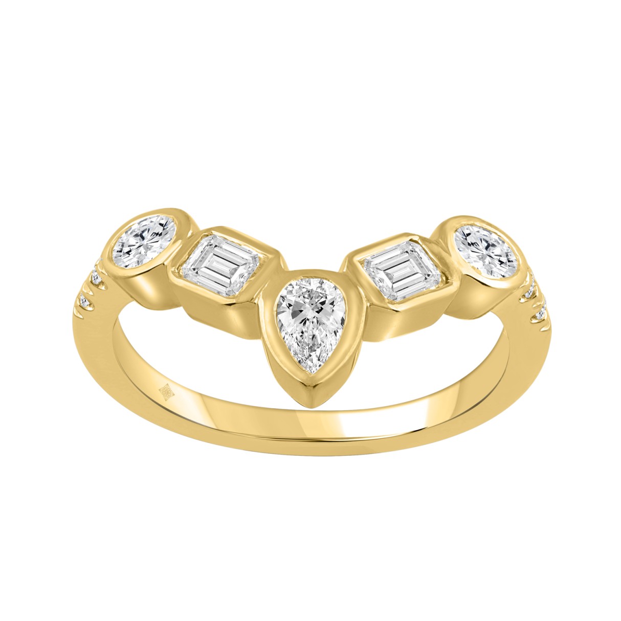 14K YELLOW GOLD 1.00CT ROUND/EMERALD/OVAL/PEAR DIAMOND LADIES BAND (PEAR 1/5CT EMERALD 1/3CT OVAL 1/3CT)