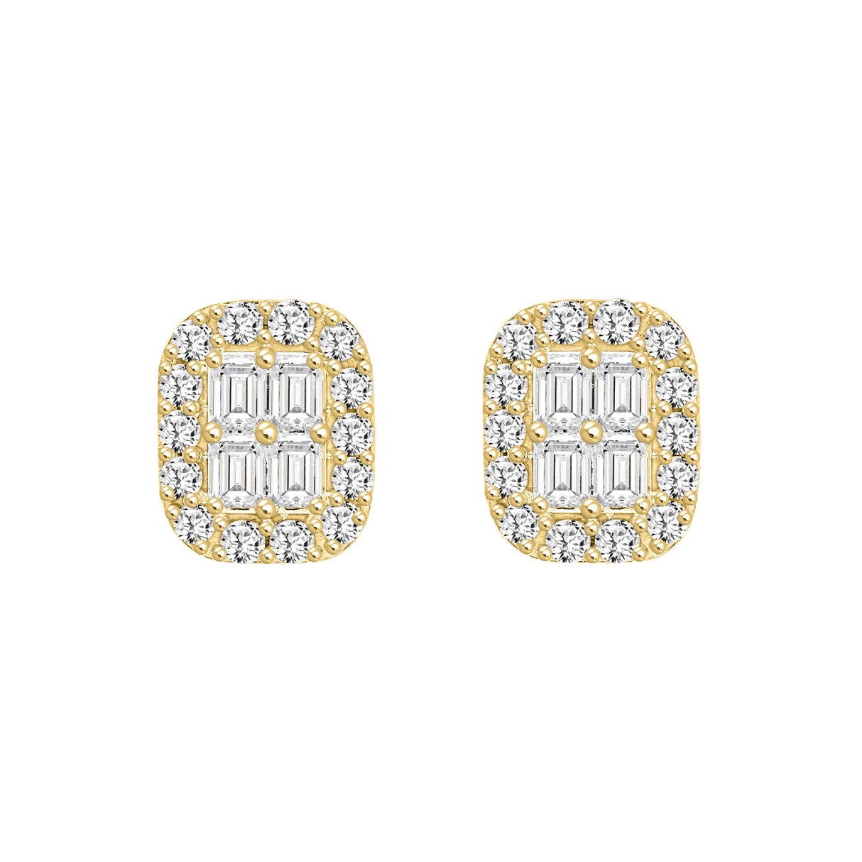 MEN’S EARRINGS 1 1/2CT ROUND/EMERALD DIAMOND 14K YELLOW GOLD