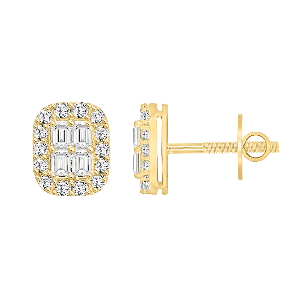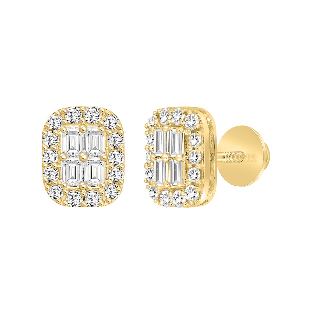 14K YELLOW GOLD 1CT ROUND/PRINCESS DIAMOND MEN’S EARRINGS