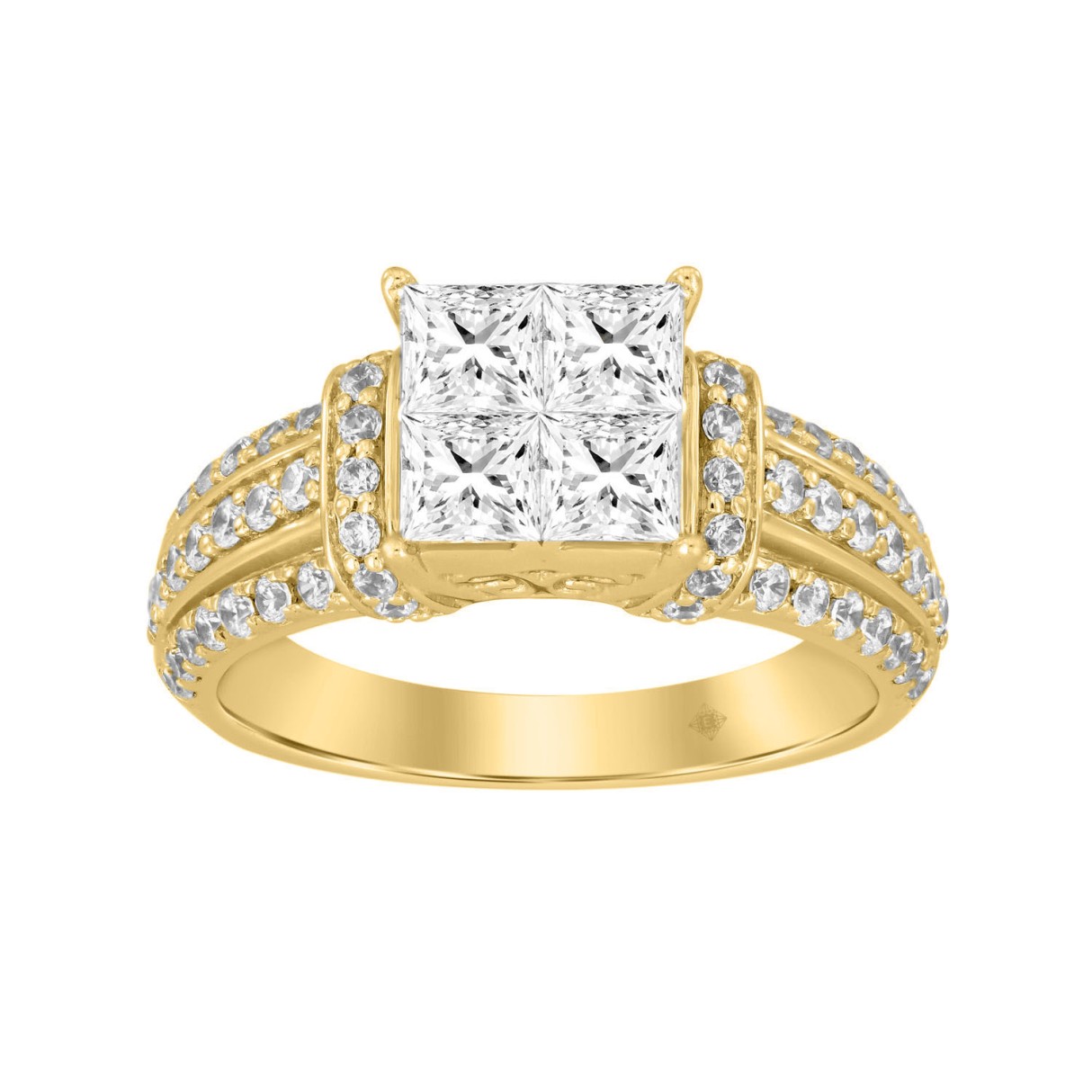 14K YELLOW GOLD 1 1/2CT ROUND/PRINCESS DIAMOND LADIES BRIDAL RING (CENTER STONE PRINCESS DIAMOND 1CT)