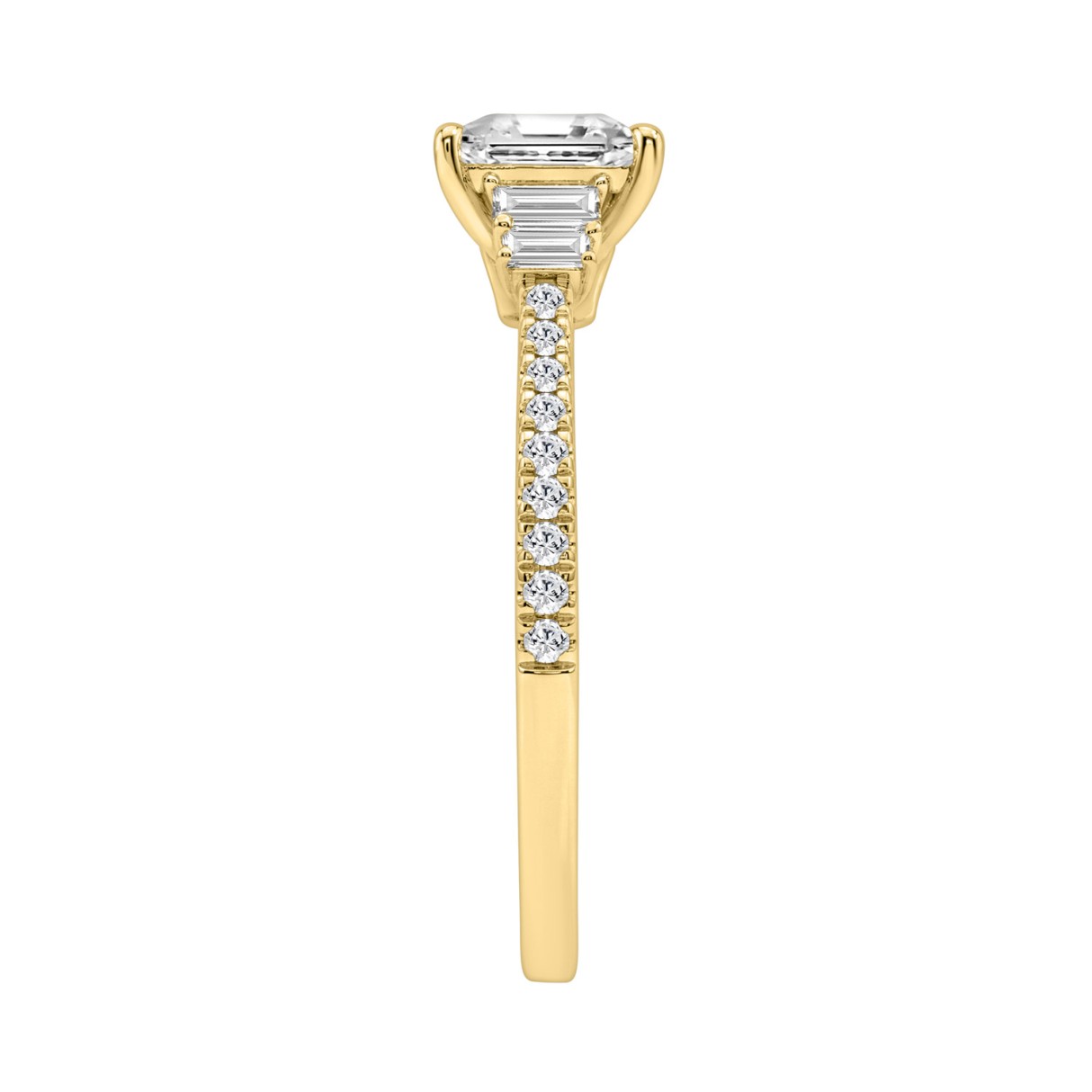 14K YELLOW GOLD 1 1/3CT ROUND/BAGUETTE/PRINCESS DIAMOND LADIES RING (CENTER STONE PRINCESS DIAMOND 1CT)