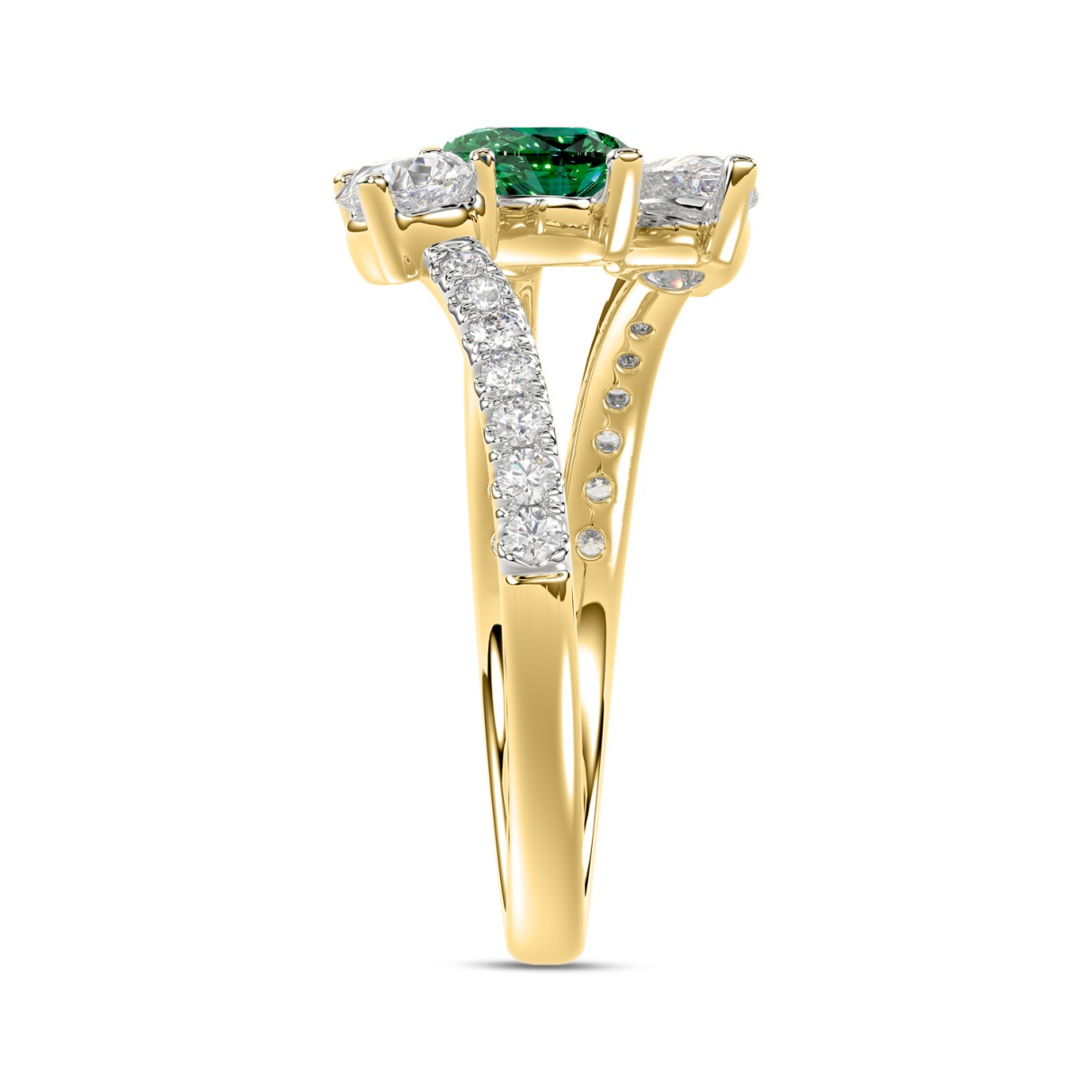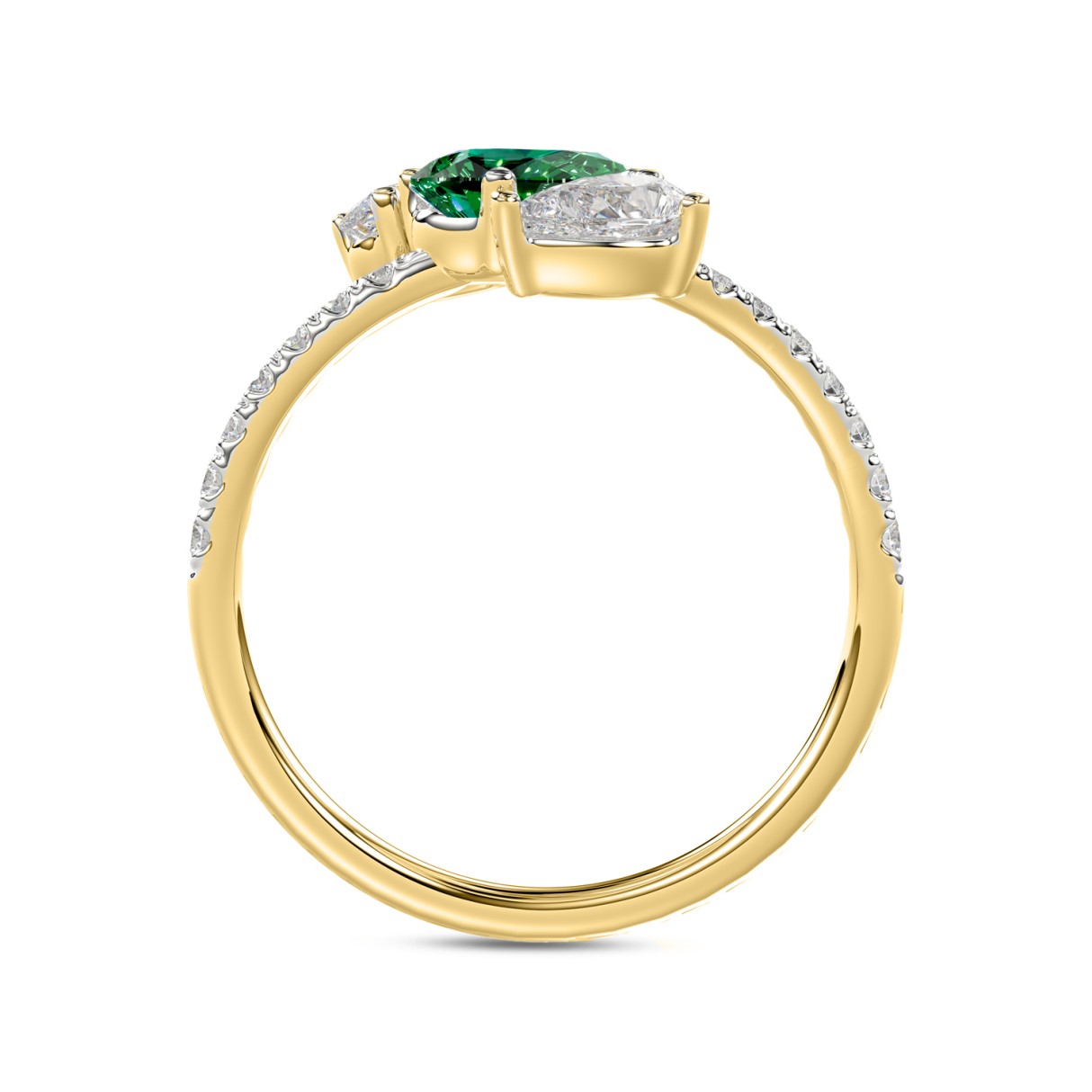 14K YELLOW GOLD 1 1/4CT ROUND/PEAR EMERALD GREEN DIAMOND LADIES RING (GREEN EMERALD PEAR 1/2CT)