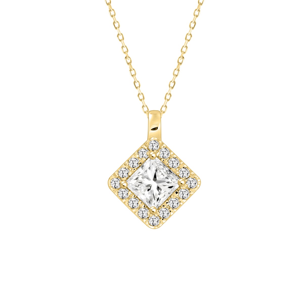 14K YELLOW GOLD 1 1/4CT ROUND/PRINCESS DIAMOND LADIES PENDANT WITH CHAIN (CENTER STONE PRINCESS DIAMOND 1CT