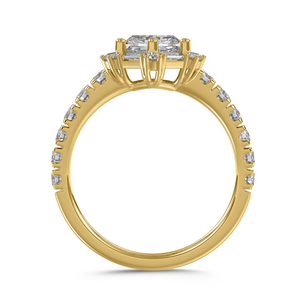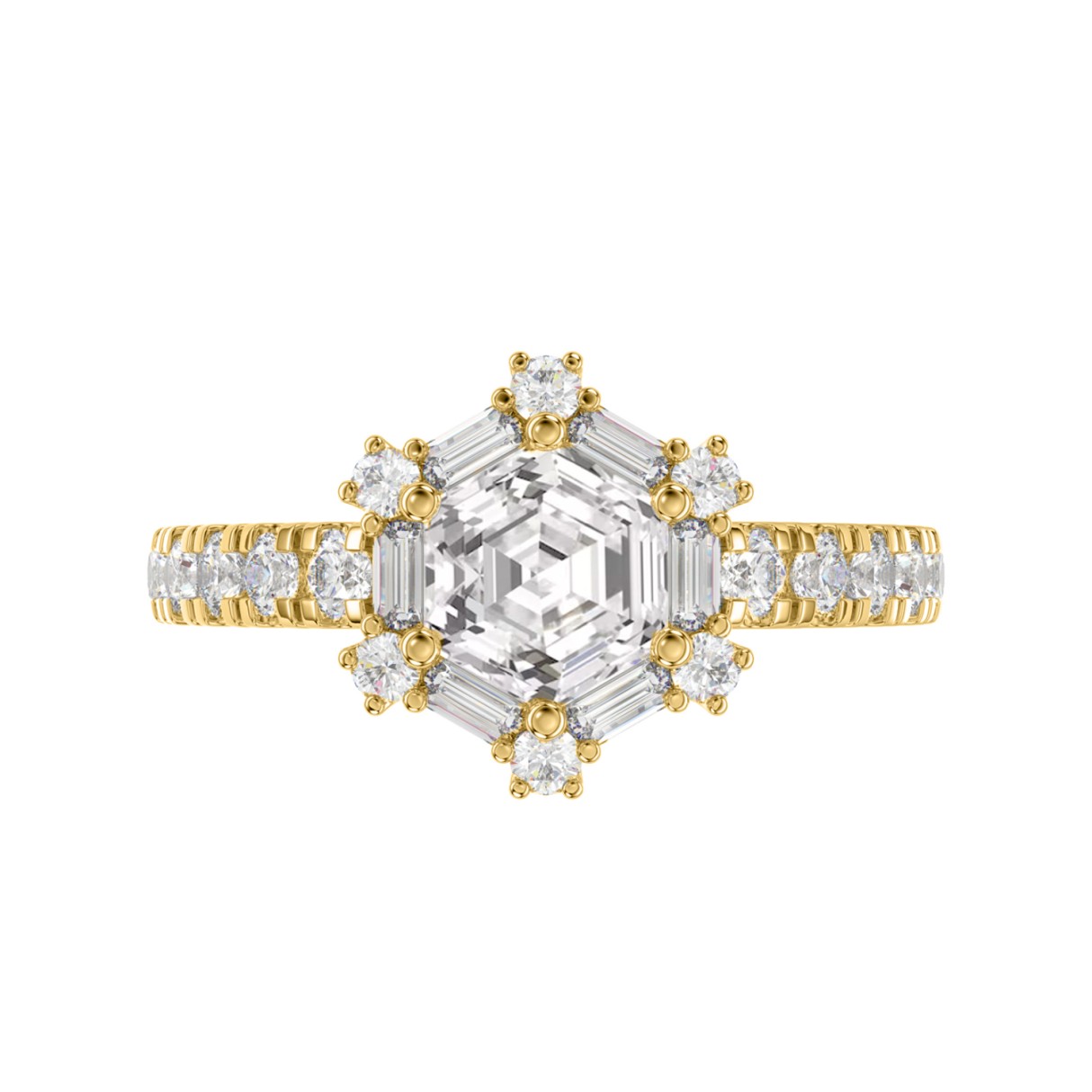 14K YELLOW GOLD 1 3/4CT ROUND/BAGUETTE/HEZAGON STEP CUT DIAMOND LADIES RING (CENTER STONE HEZAGON DIAMOND 1CT)