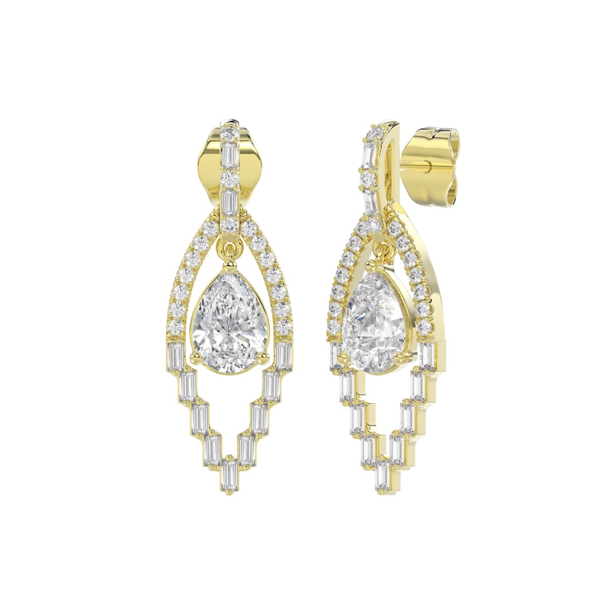 14K YELLOW GOLD 2.00CT ROUND/BAGUETTE/PEAR DIAMOND LADIES EARRINGS