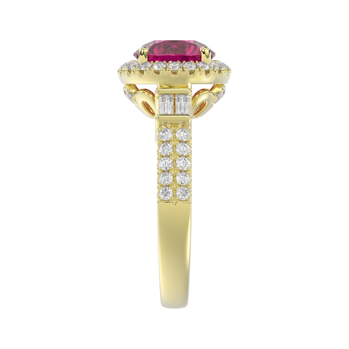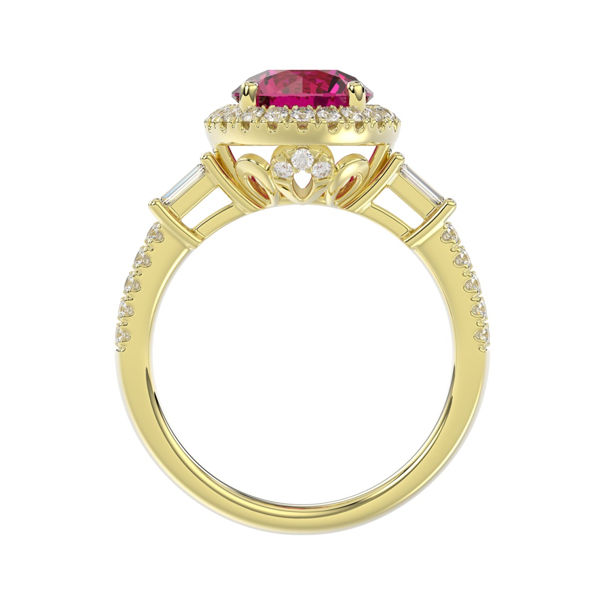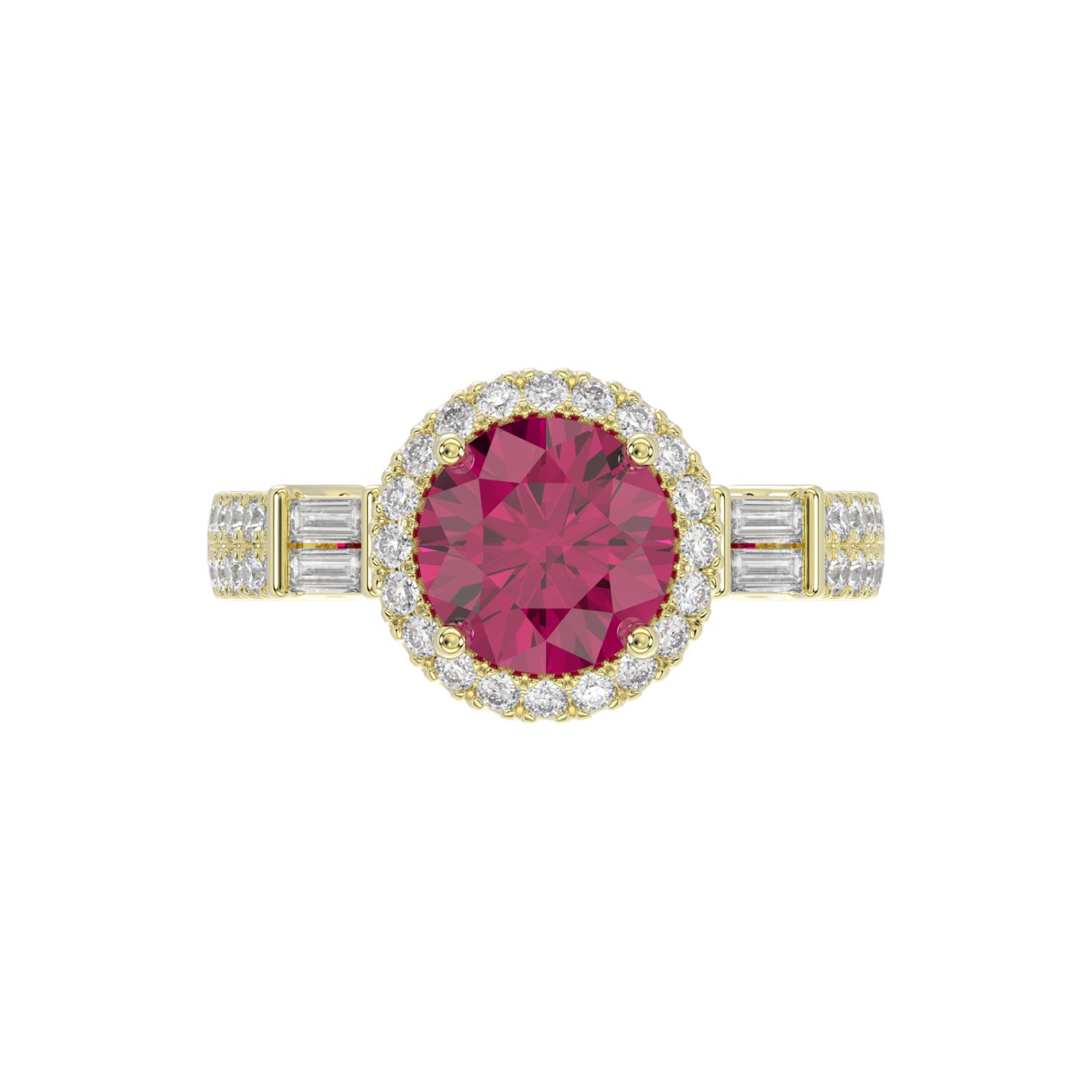 14K YELLOW GOLD 2 1/2CT ROUND/BAGUETTE DIAMOND LADIES RING (CENTER STONE ROUND RUBY DIAMOND 2CT)
