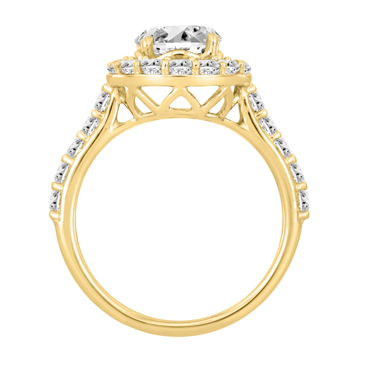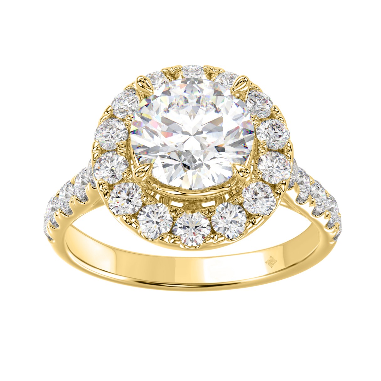 14K Yellow Gold 2 1/2Ct Round Lab Grown Diamond Halo Engagement Ring 1 1/2Ct Round Center Stone (Color F-G Clarity Vs1/Vs2)
