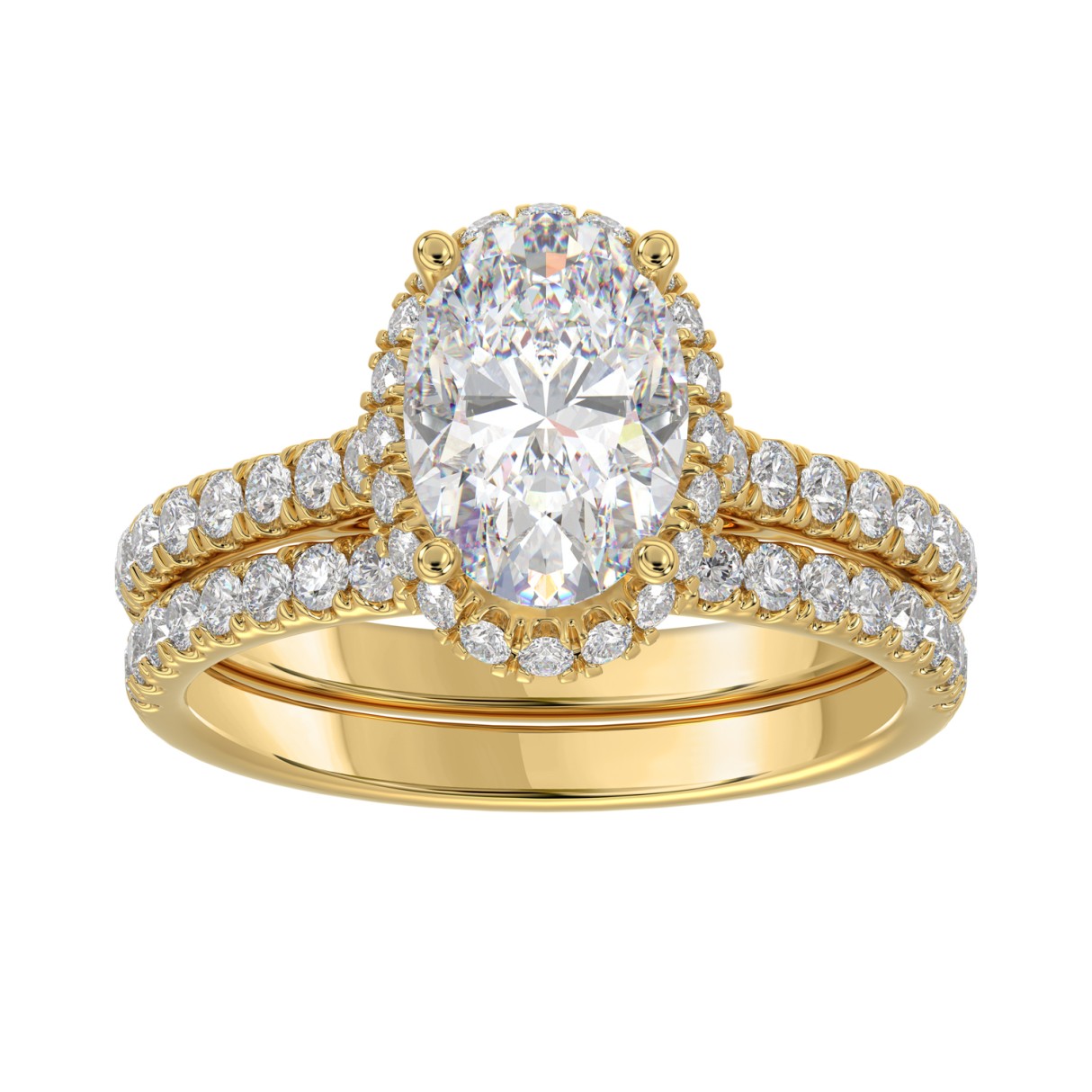 14K YELLOW GOLD 2 3/4CT ROUND/OVAL DIAMOND LADIES BRIDAL RING (CENTER STONE OVAL DIAMOND 2CT)