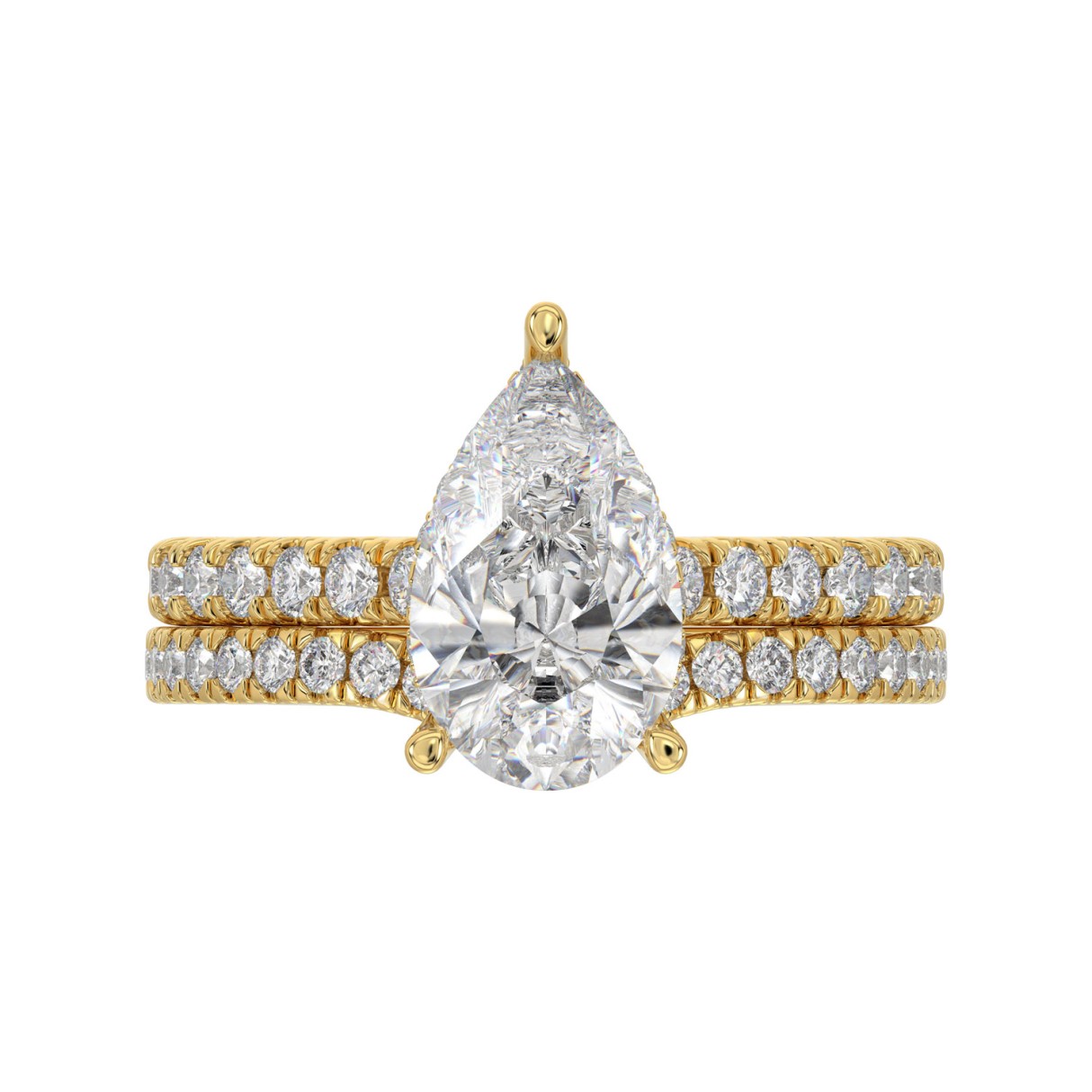 14K YELLOW GOLD 2 3/4CT ROUND/PEAR DIAMOND LADIES BRIDAL SET