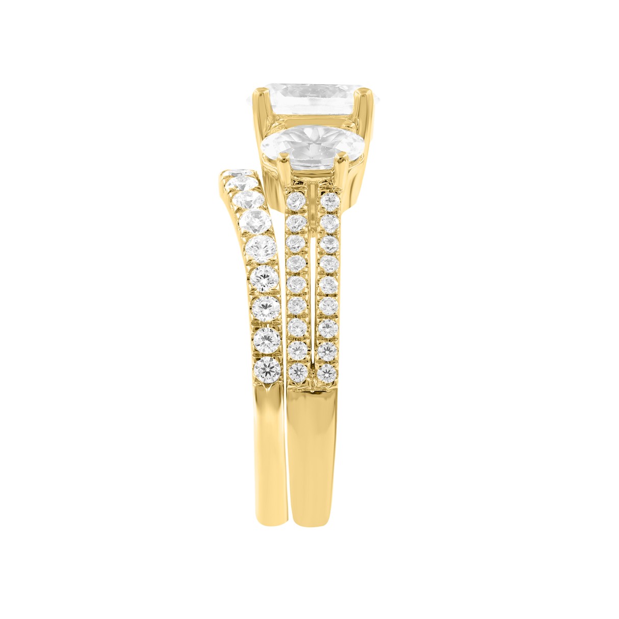 14K Yellow Gold 2 3/8Ct Oval & Round Diamond Bridal Set 1.00Ct Center Stone Oval Diamond Three Stone Engagement Ring With Matching Wedding Band For Wo