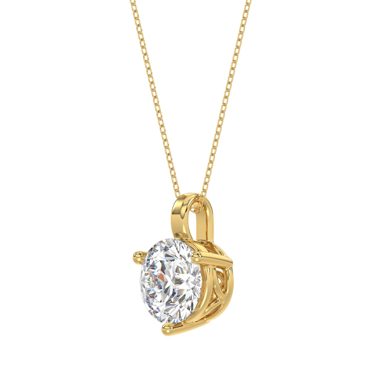 LADIES SOLITAIRE PENDANT WITH UNDER-PASS CHAIN 2 1/2CT ROUND DIAMOND 14K YELLOW GOLD