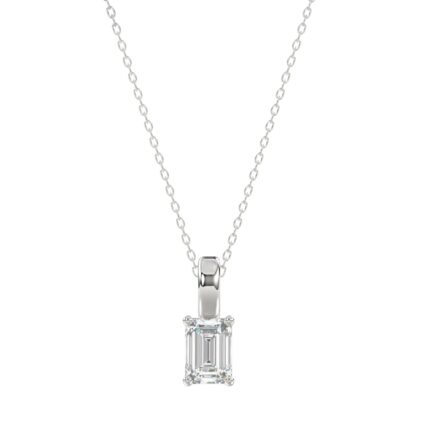 LADIES SOLITAIRE PENDANT WITH CHAIN 1/2CT EMERALD DIAMOND 14K WHITE GOLD