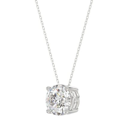 SOLITAIRE LADIES PENDANTS WITH CHAIN 0.25CT ROUND DIAMOND 14K WHITE GOLD