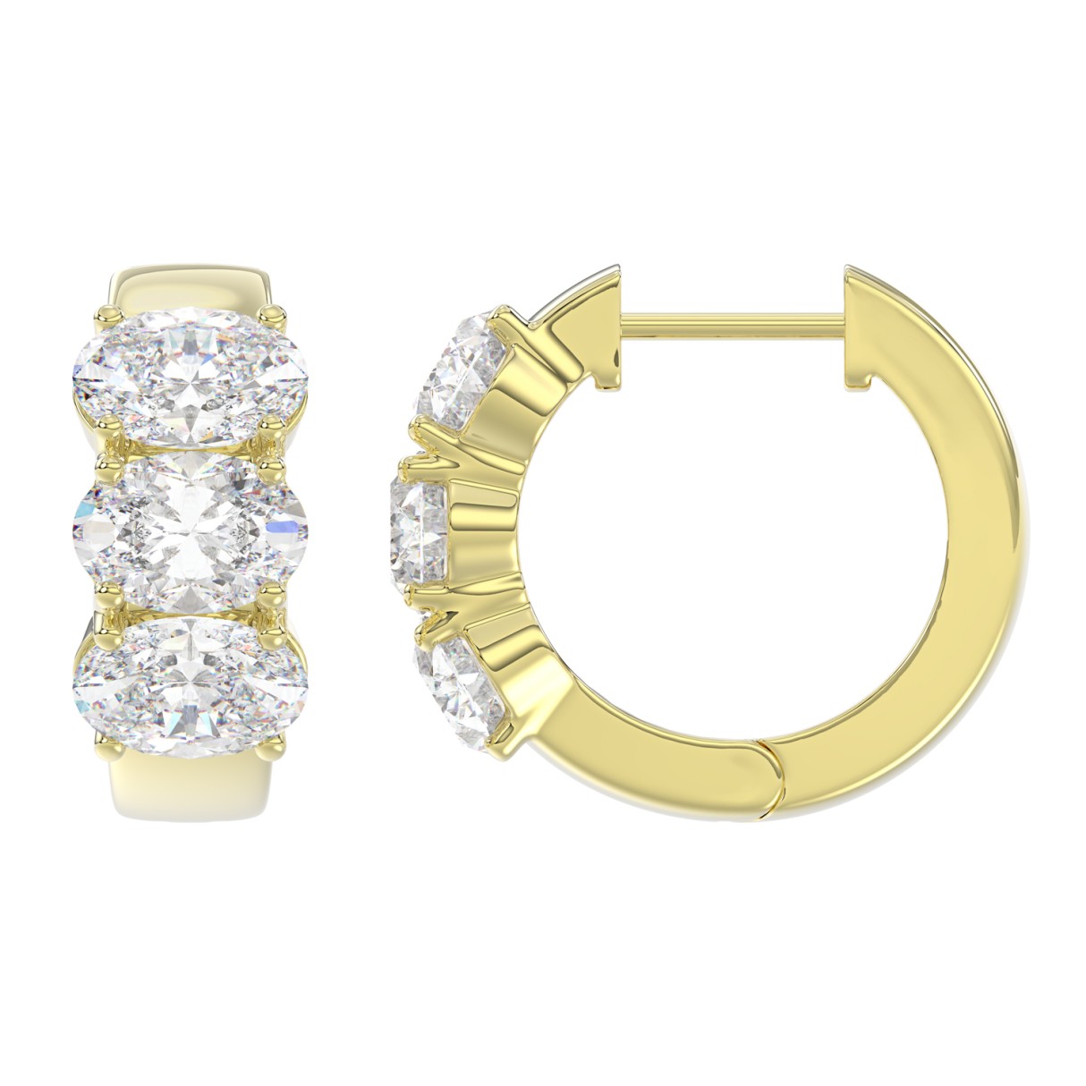 14K YELLOW GOLD 3.00CT OVAL DIAMOND LADIES HOOP EARRINGS