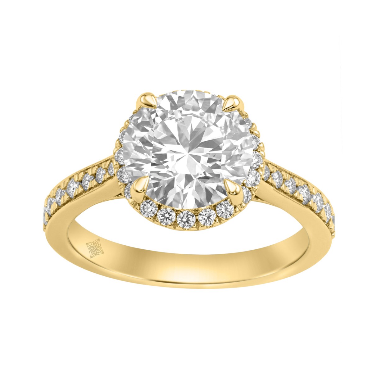 14K Yellow Gold 3 1/2Ct Round Brilliant Diamond Hidden Halo Engagement Ring Fashion Bridal Ring For Women 3Ct Round Center Stone (Color F-G -Clarity V