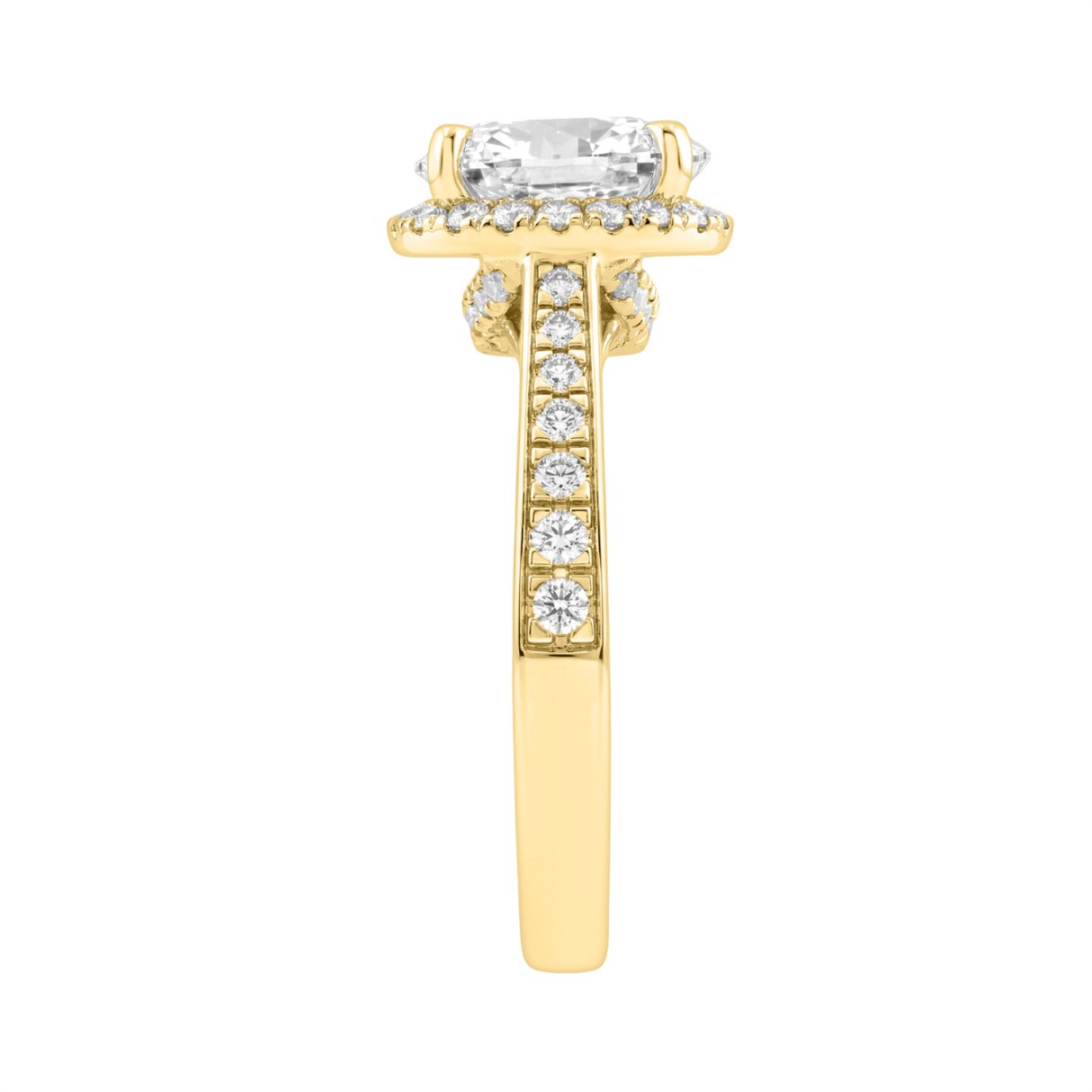 LADIES RING 5 1/4CT ROUND/CUSHION DIAMOND 14K YELLOW GOLD (CENTER STONE CUSHION DIAMOND 4CT )