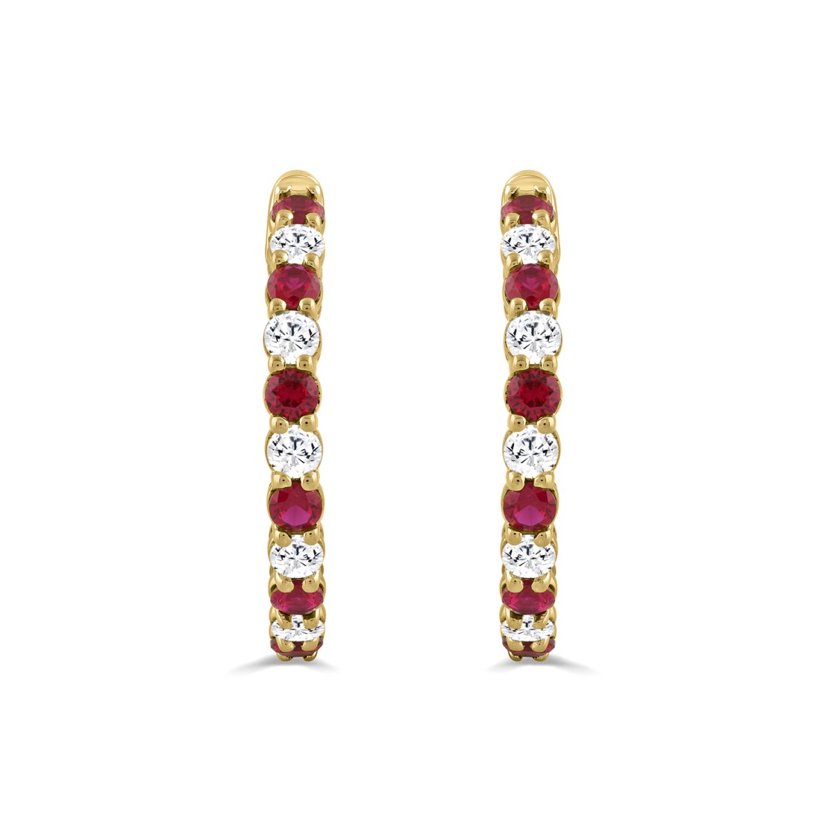 14K YELLOW GOLD 3 3/8CT ROUND/RUBY ROUND DIAMOND LADIES HOOPS EARRING