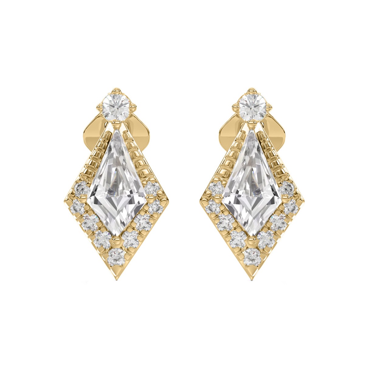 14K YELLOW GOLD 3/4CT ROUND/KITE STEP CUT DIAMOND LADIES EARRINGS