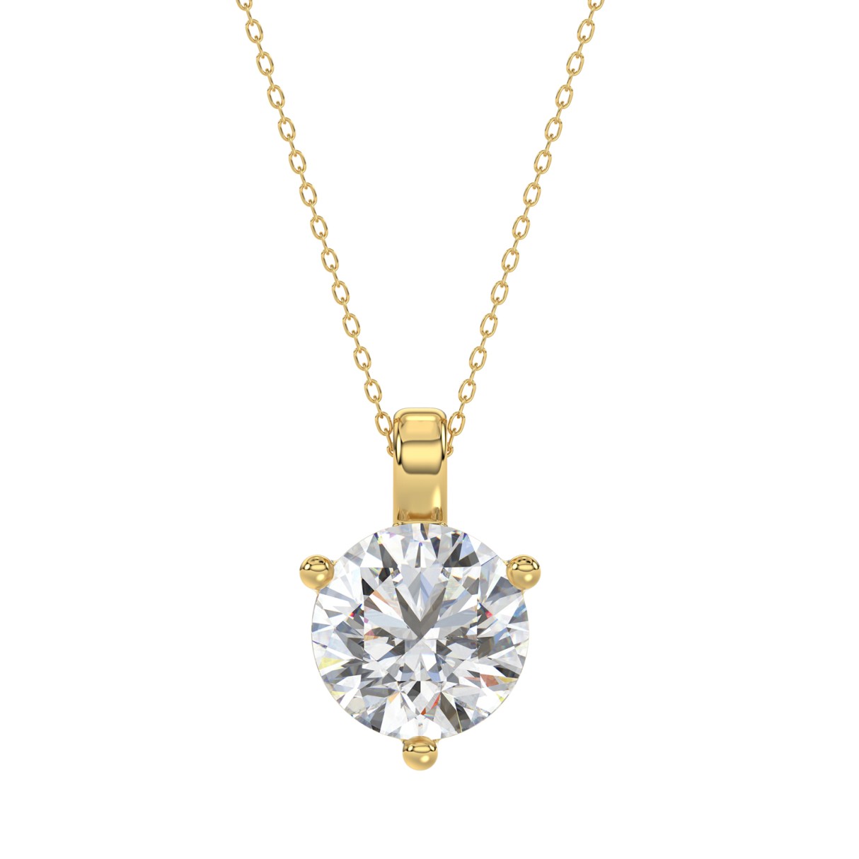 14K YELLOW GOLD 3CT ROUND DIAMOND LADIES SOLITAIRE PENDANTS WITH CHAIN