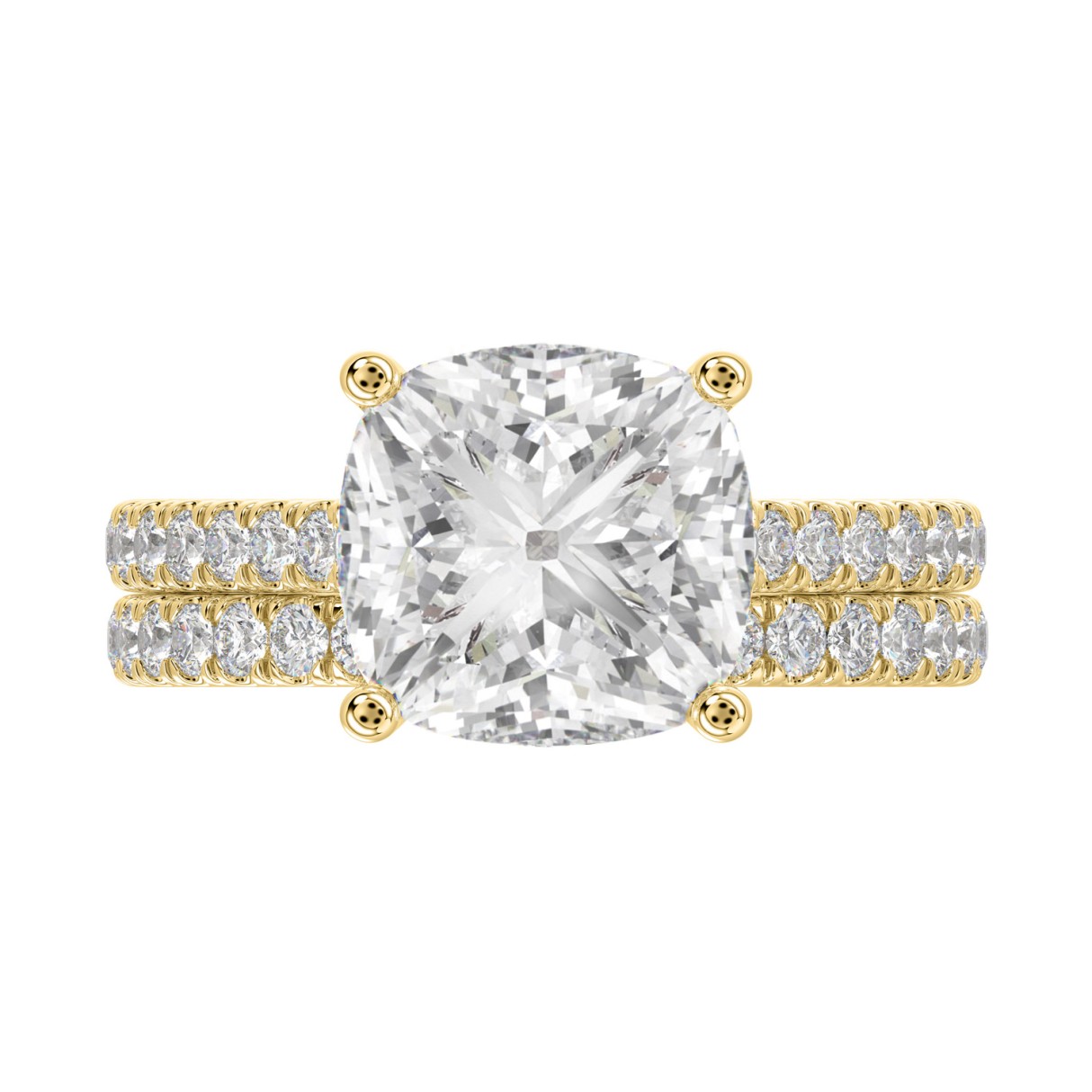 14K YELLOW GOLD 4 1/2CT ROUND/CUSHION DIAMOND LADIES BRIDAL SET (CENTER STONE CUSHION DIAMOND 4CT)