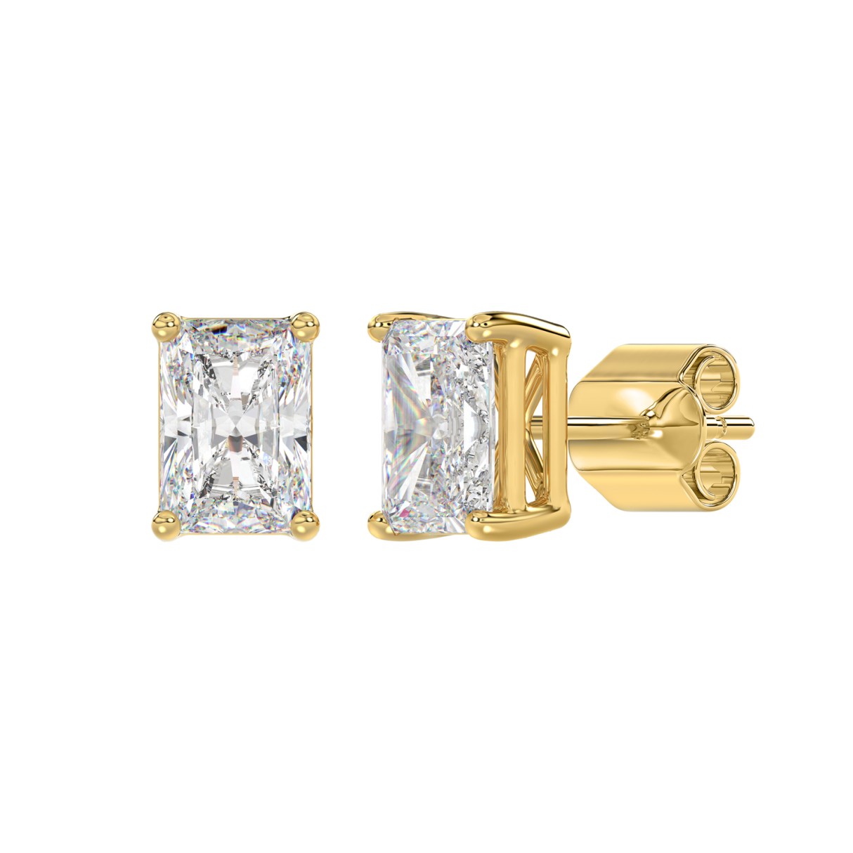 14K YELLOW GOLD 4CT RADIANT DIAMOND LADIES SOLITAIRE EARRINGS