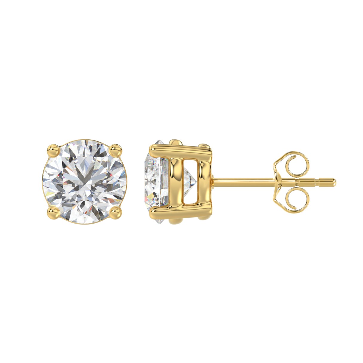 14K YELLOW GOLD 4CT ROUND DIAMOND LADIES SOLITAIRE EARRINGS (CENTER STONE ROUND DIAMOND 2CT )