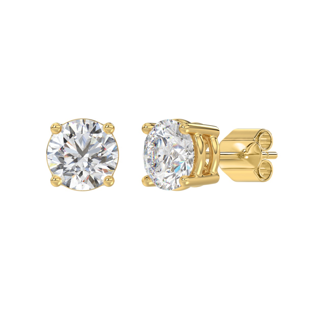 LADIES SOLITAIRE CROWN SETTING EARRINGS 1.50CT ROUND DIAMOND 14K YELLOW GOLD