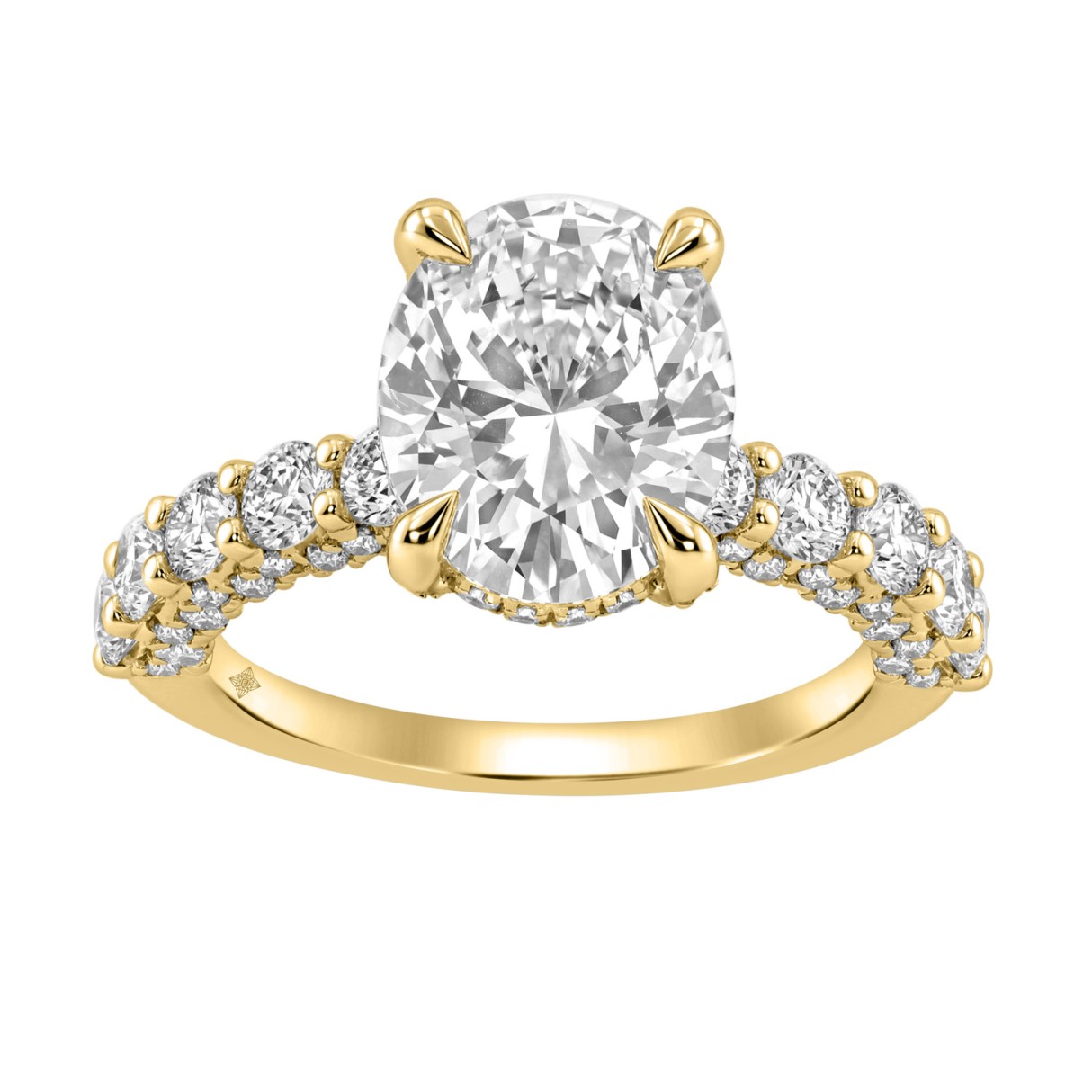 14K Yellow Gold 5 1/2Ct Oval & Round Diamond Engagement Ring Women Bridal Wedding Ring 4Ct Oval Center Stone (Color F-G -Clarity Vs1/Vs2)