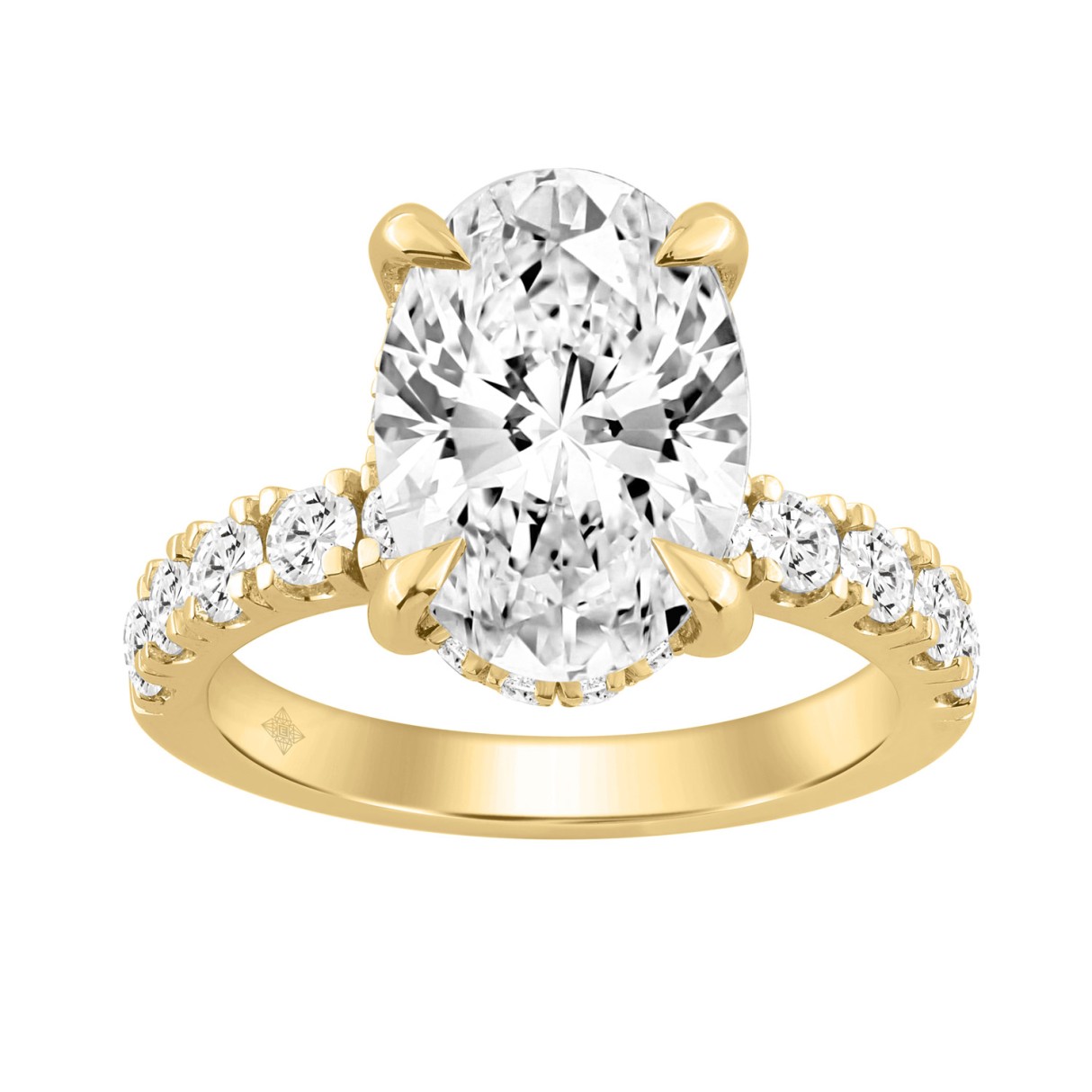 14K YELLOW GOLD 6.00CT ROUND/OVAL DIAMOND LADIES RING (CENTER STONE OVAL DIAMOND 5.00CT)