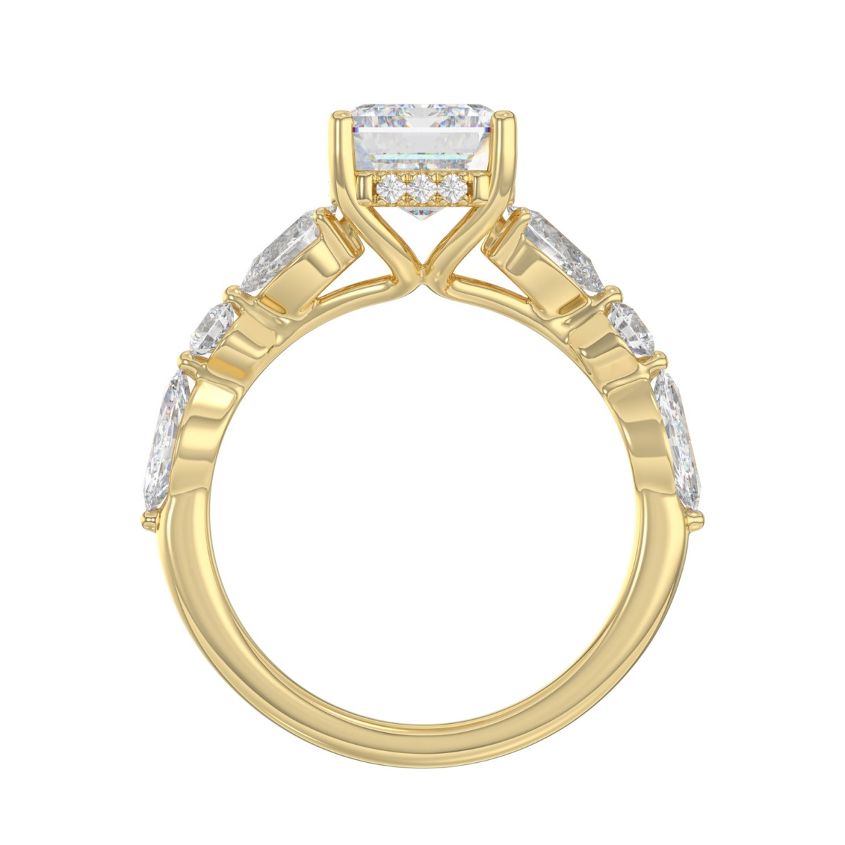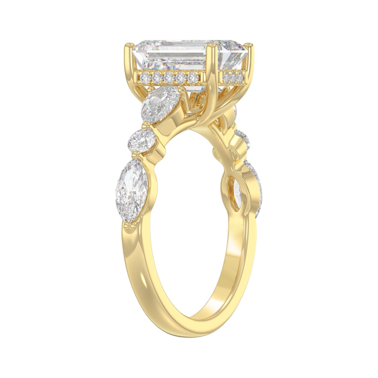 14K Yellow Gold Emerald Cut Diamond Classic Bridal Ring for Ladies 4.00CT with Pear Round & Marquise Diamond 3.00CT Emerald Center stone (Color F-