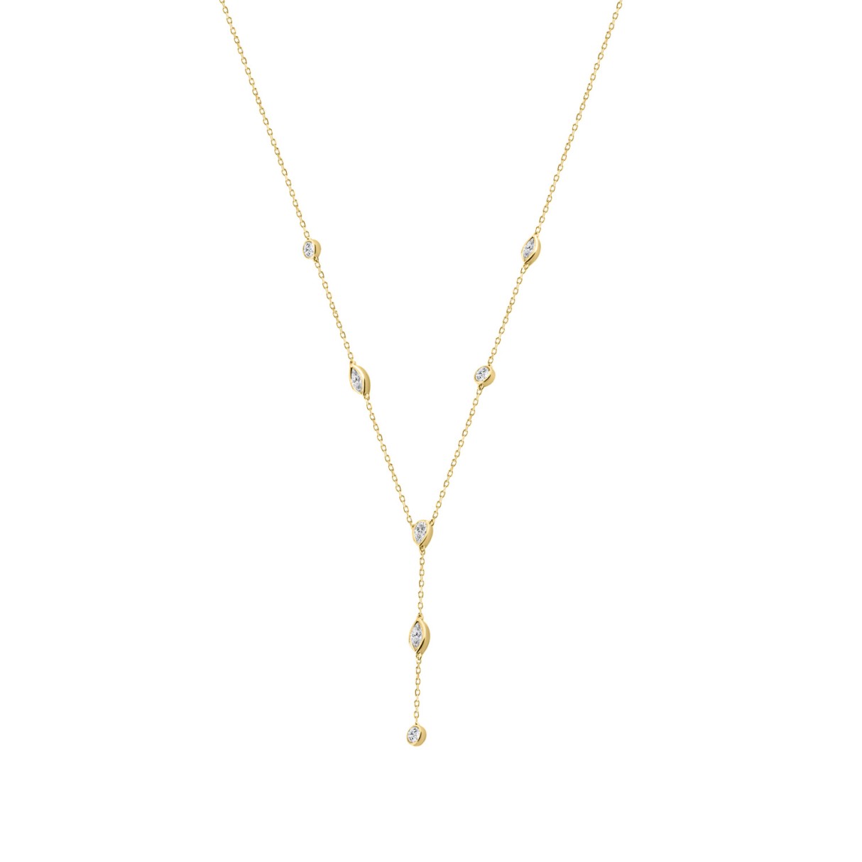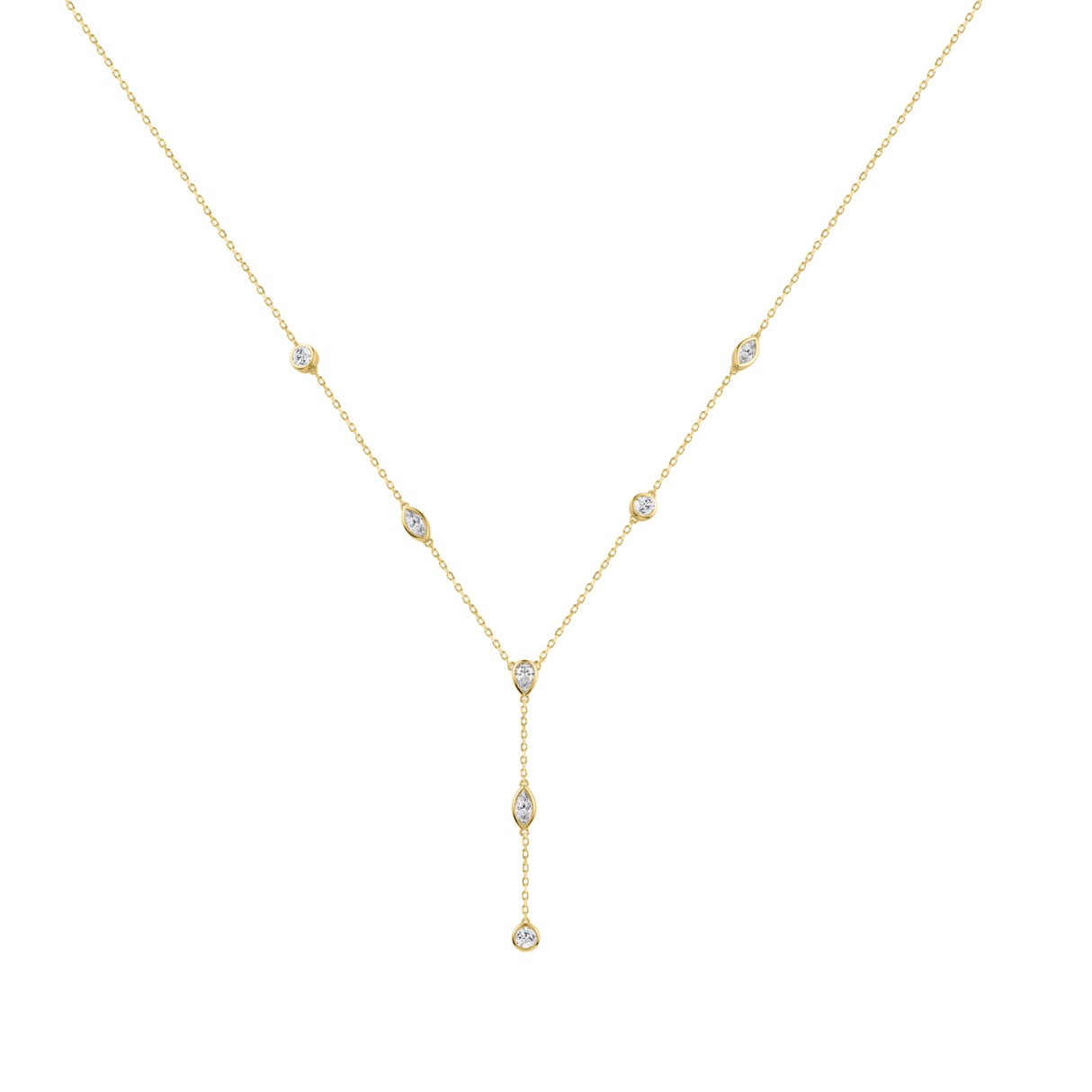 14K Yellow Gold Lab Brown Diamond Necklace 1 1/2Ct Round Pear Marquise Cut Drop Necklace For Ladies, Elegant Modern Jewelry (Color F-G -Clarity Vs1/Vs