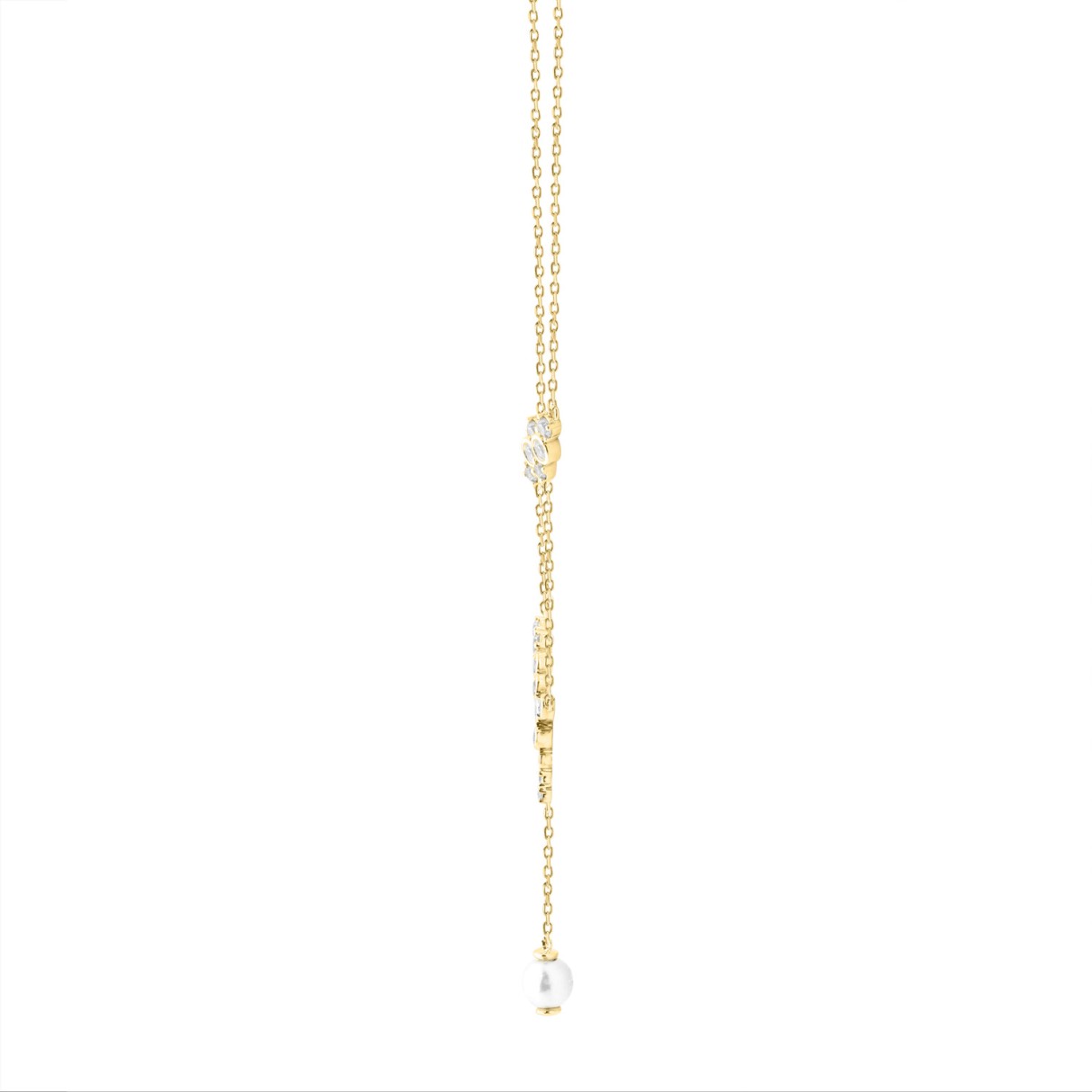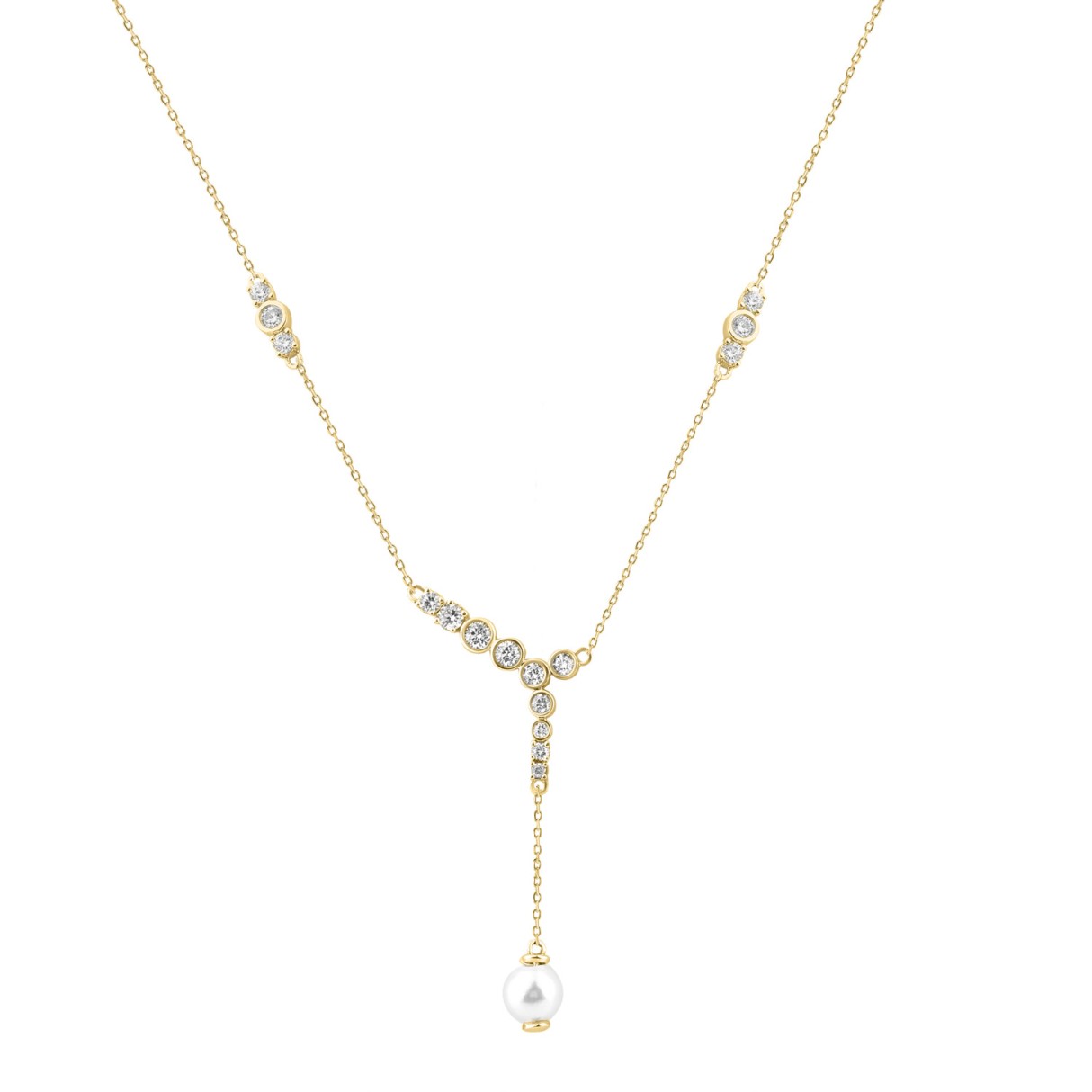 14K Yellow Gold Pearl Drop Necklace For1/2Ct Round Diamond Luxury Ladies Jewelry (Color F-G -Clarity Vs1/Vs2)