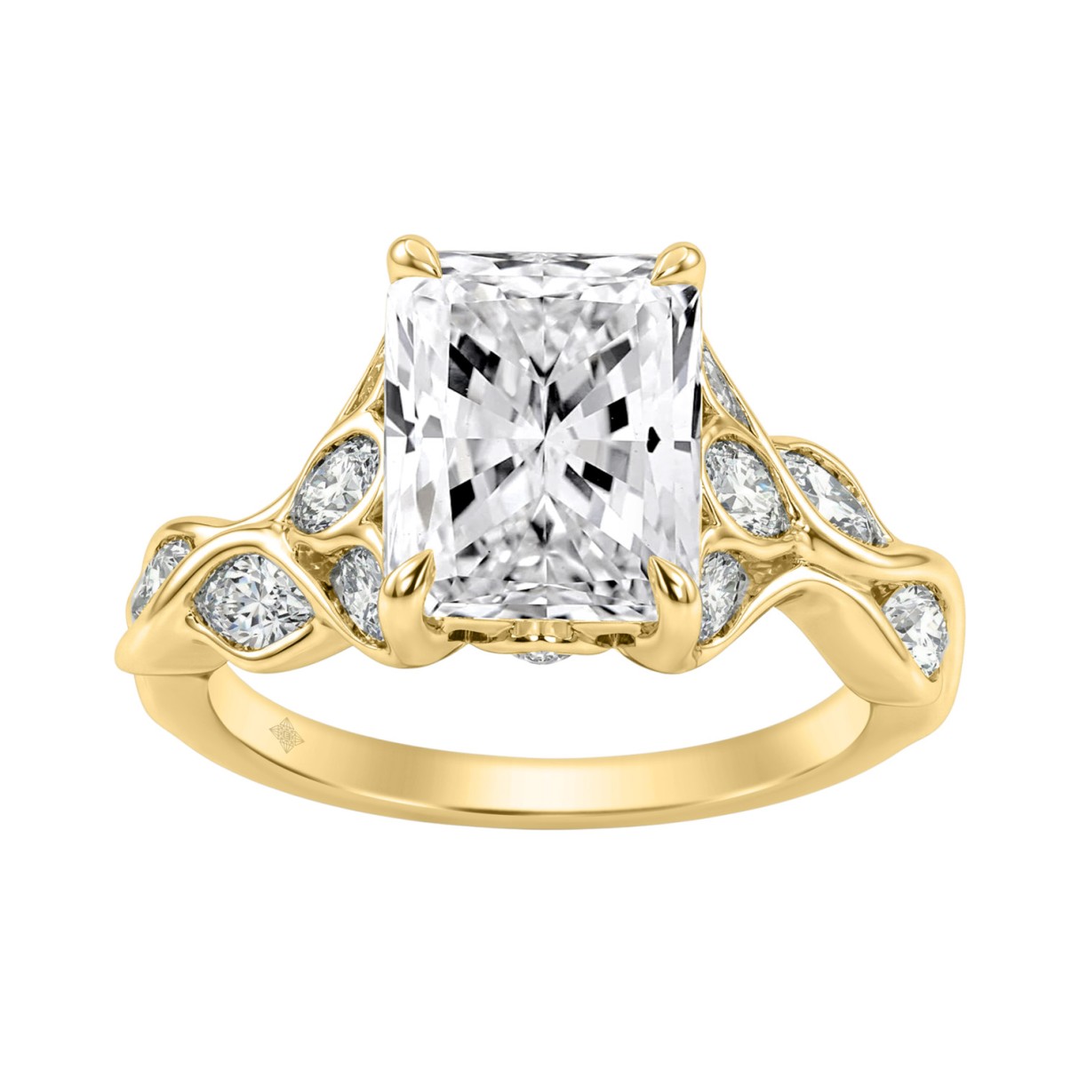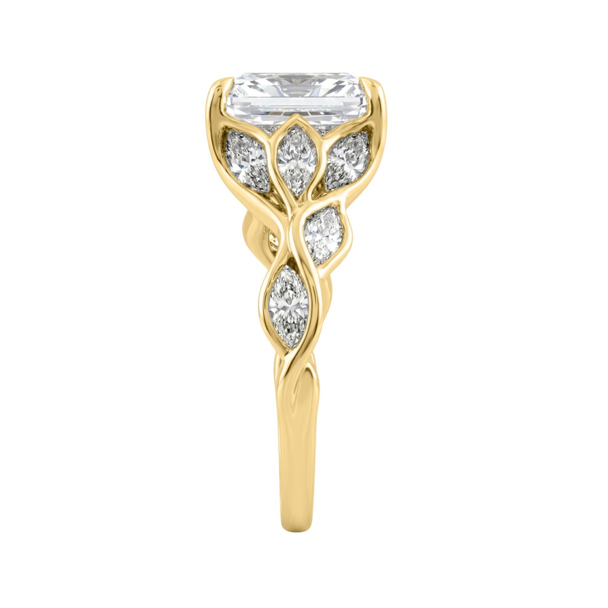 14K Yellow Gold Radiant Cut Diamond Ring 4 1/5Ct With Marquise Side Stones Ladies Engagement Ring 3Ct Radiant Center Stone (Color F-G -Clarity Vs1/Vs