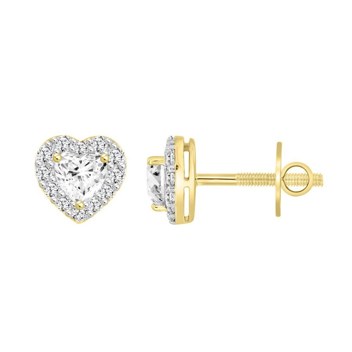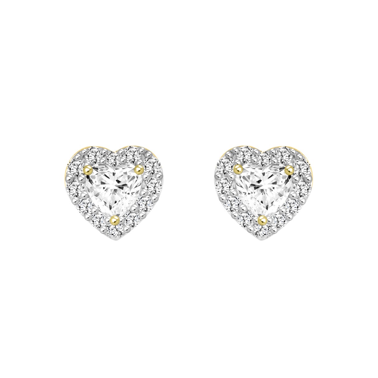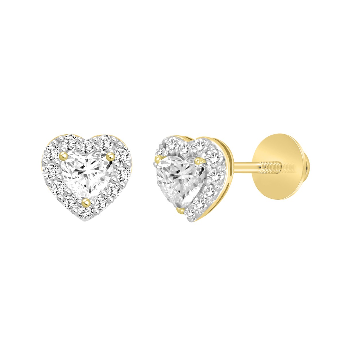 14K YELLOW GOLD1 3/8CT ROUND / HEART DIAMOND LADIES EARRINGS (CENTER STONE HEART DIAMOND 1CT )