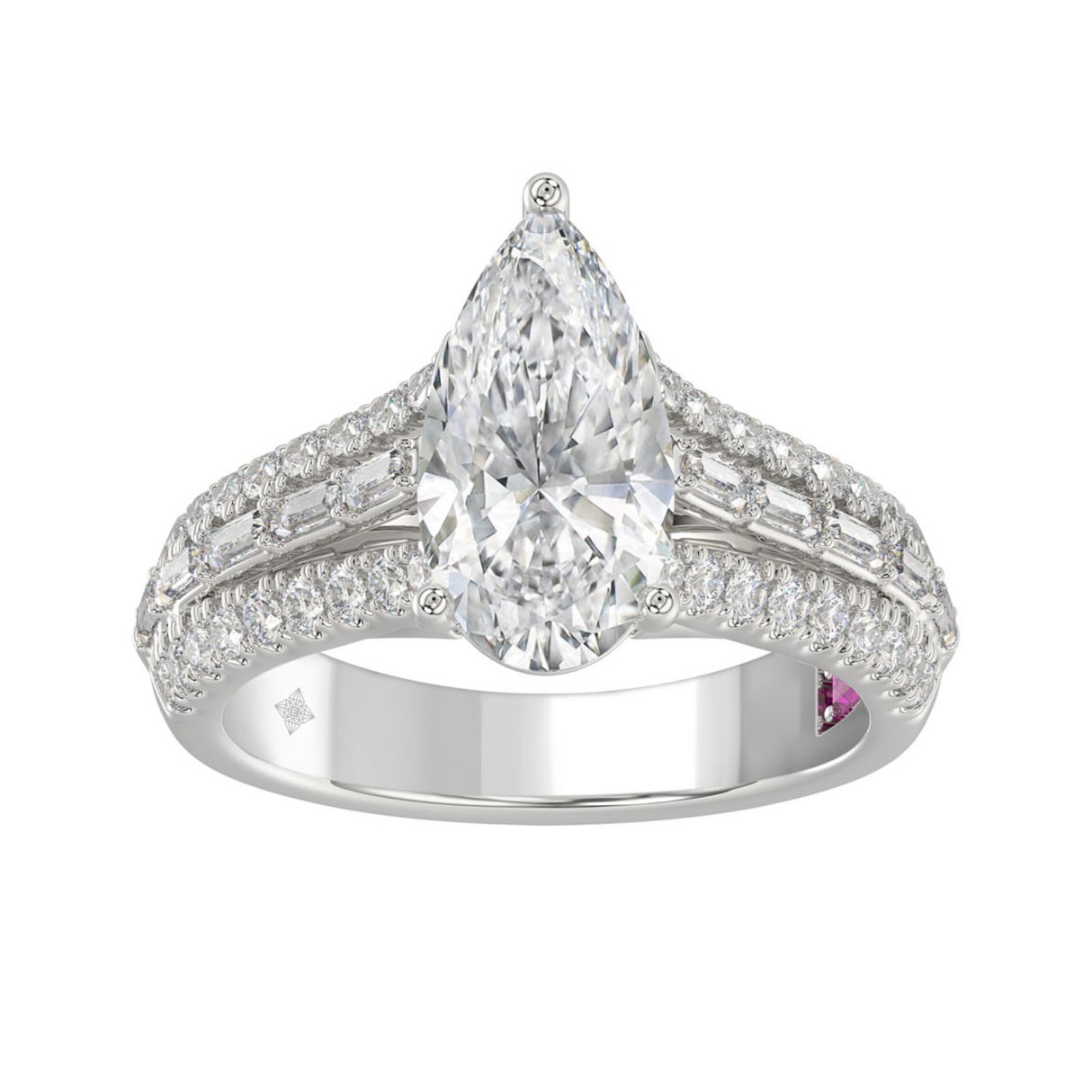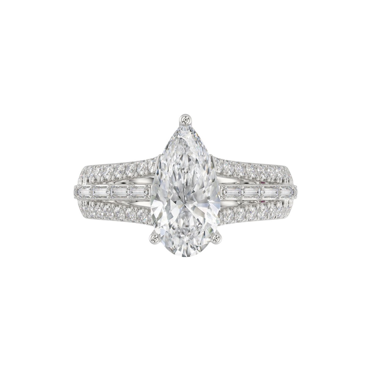 21K PLATINUM LADIES RING 2 3/4CT ROUND/PEAR/BAGUETTE DIAMOND (CENTER STONE PEAR DIAMOND 2CT)