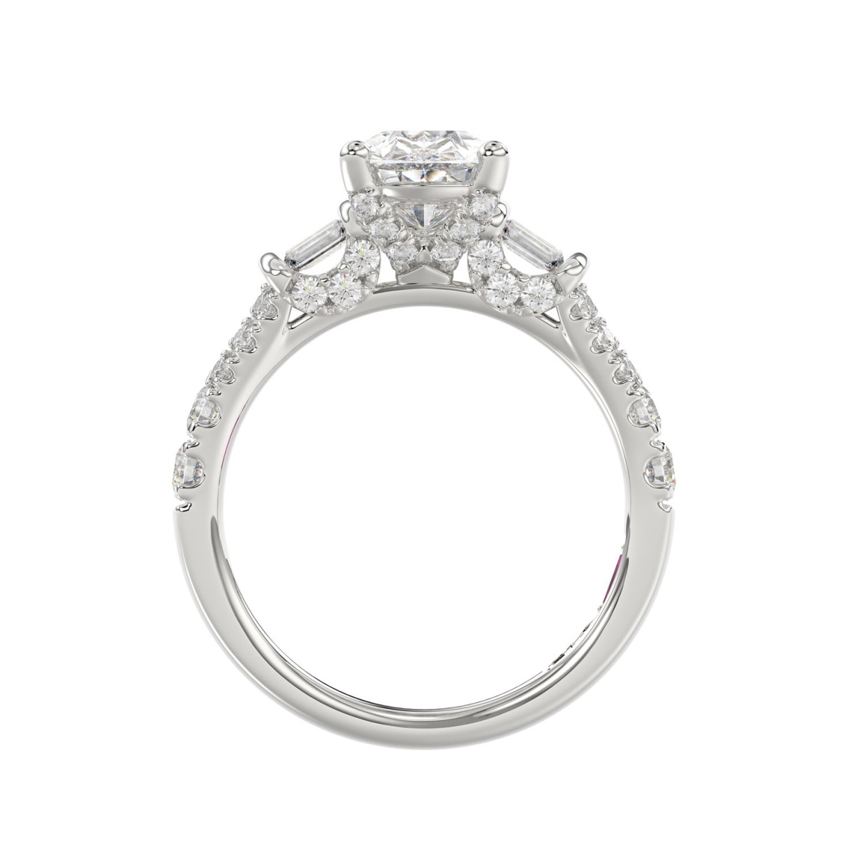 3 1/2CT Round Brilliant Diamond & Baguette Diamond Ladies Bridal Ring 14K White Gold Ladies Engagement Ring (3.00CT Round Center stone (Color F-G -Cl