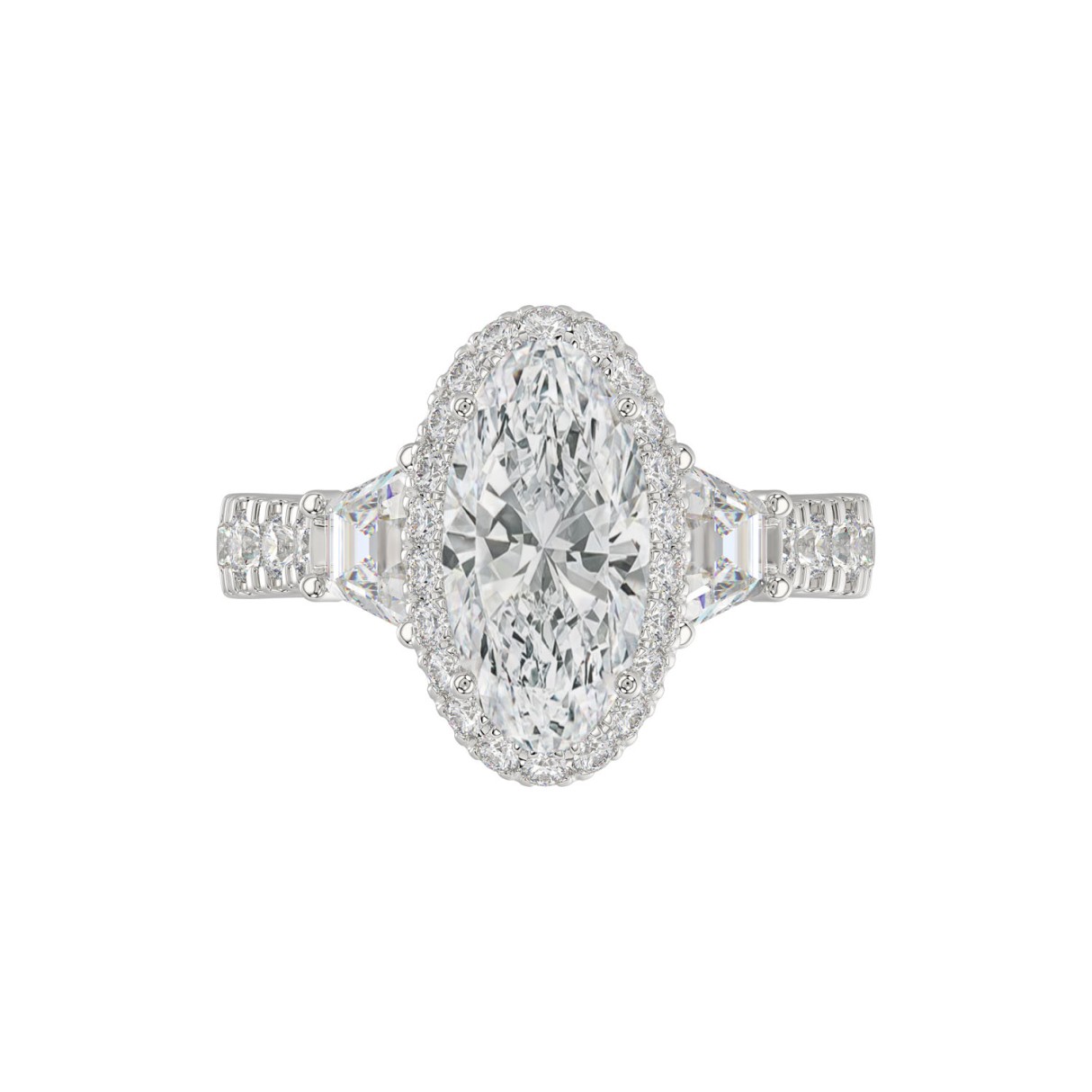 21K PLATINUM LADIES RING 3 1/4CT ROUND/OVAL/TRAPEZOID/BAGUETTE DIAMOND (CENTER STONE OVAL DIAMOND 2CT)