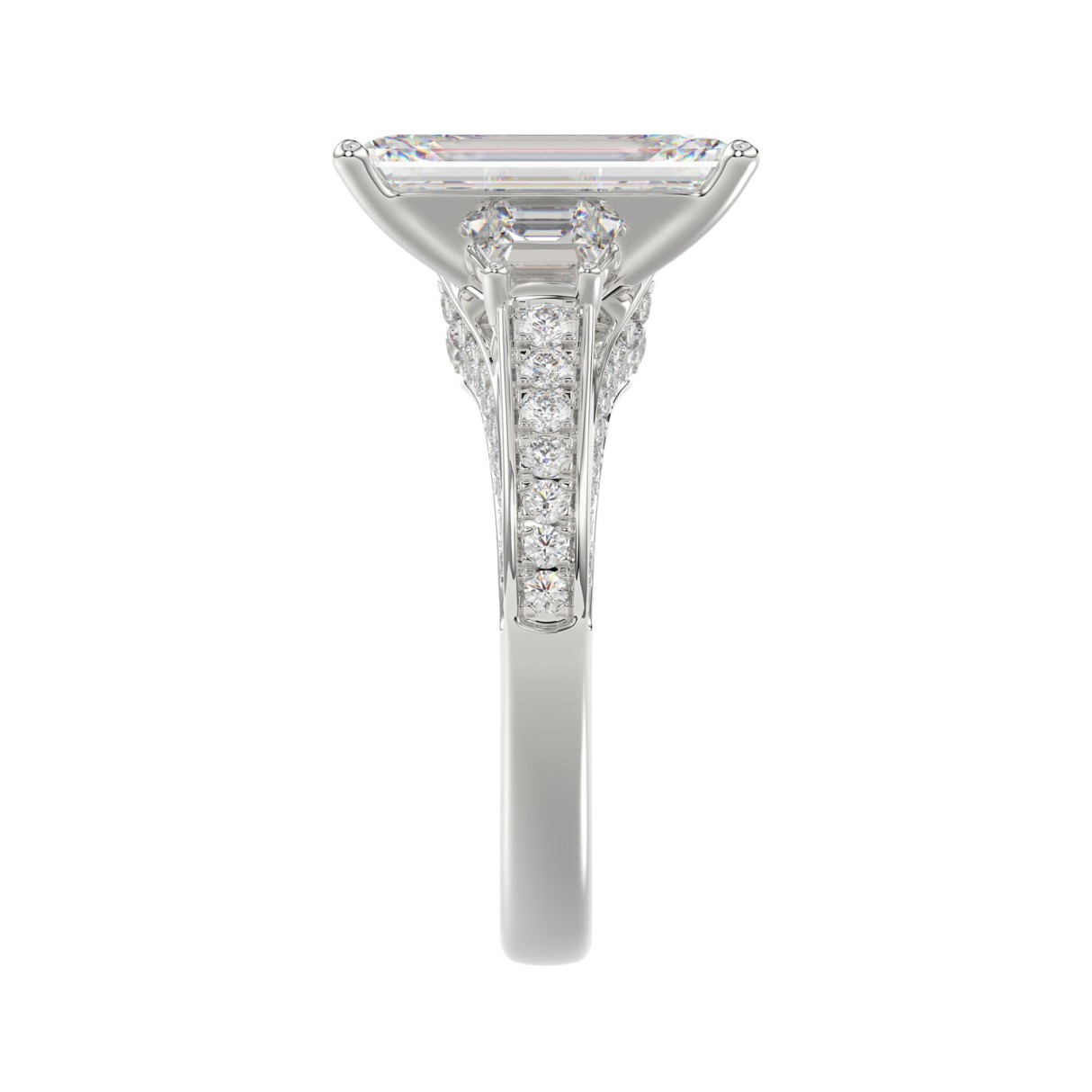 21K PLATINUM LADIES RING WITH 4.00CT ROUND/EMERALD/BAGUETTE DIAMONDS (CENTER STONE EMERALD DIAMOND 3CT)