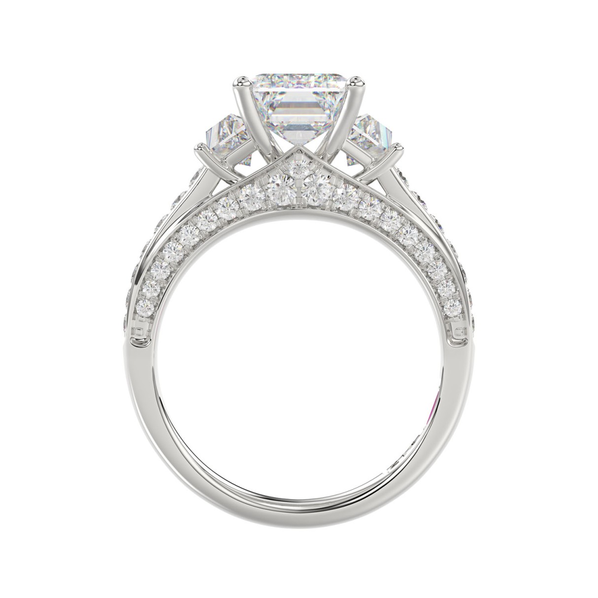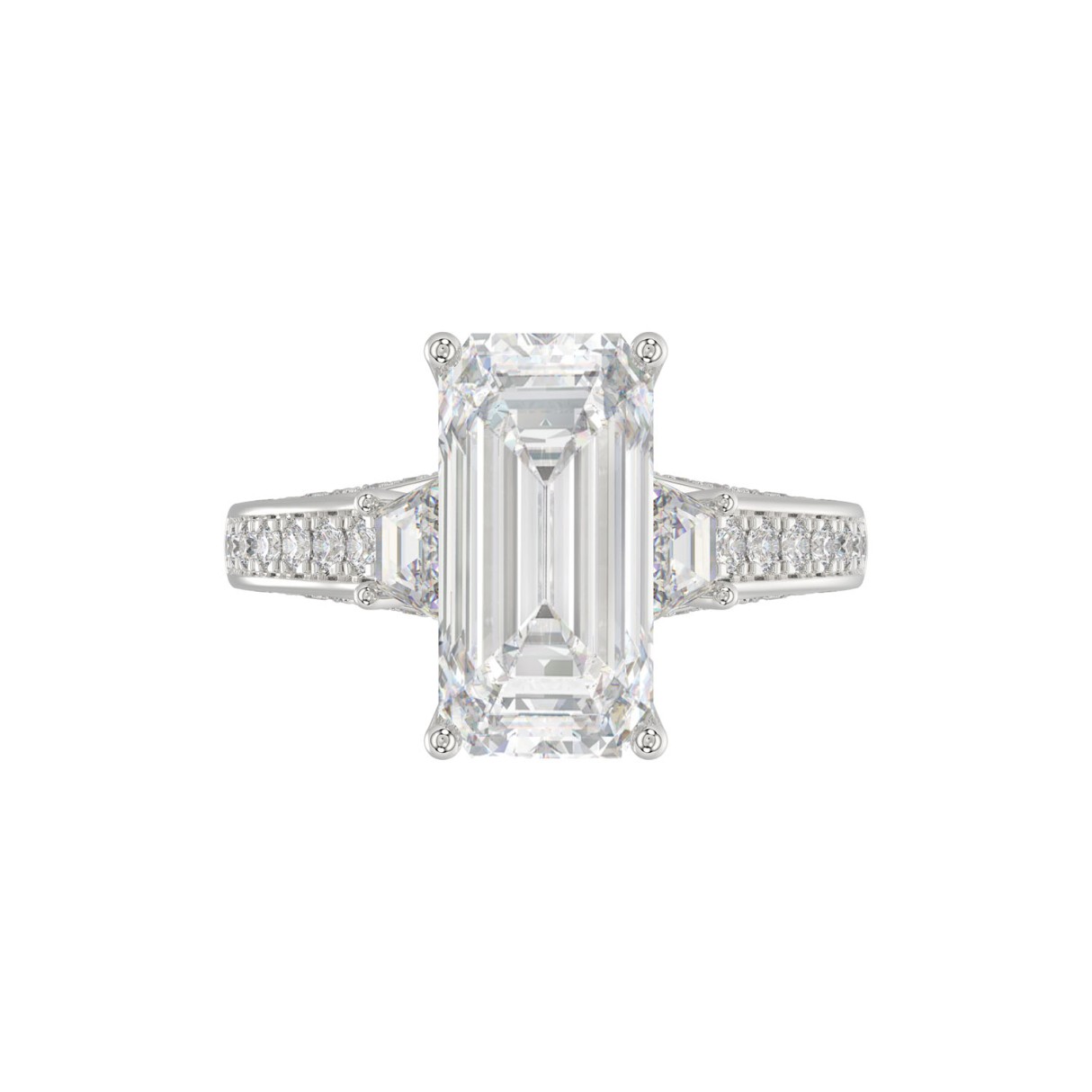 21K PLATINUM LADIES RING WITH 4.00CT TRAPEZOID/ROUND/EMERALD/BAGUETTE DIAMONDS (CENTER STONE EMERALD DIAMOND 3CT)