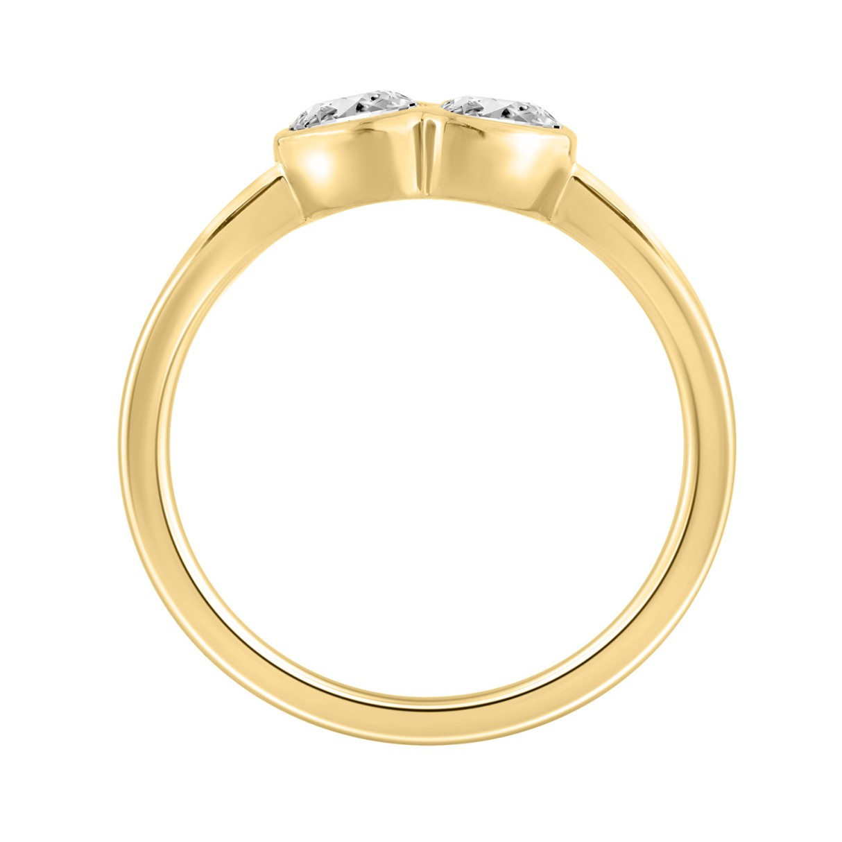 3/4CT Yellow Gold 10K Collection Linked Hearts & Two-Stone Round Diamond Ring for Women (Color F-G -Clarity VS1/VS2)