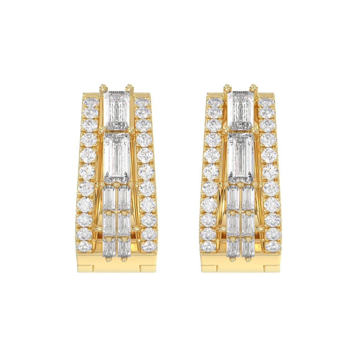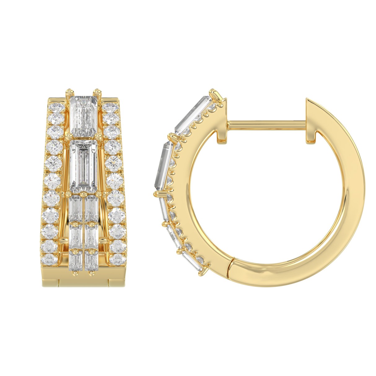 Classic 10K Yellow Gold Round & Baguette Lab Grown Diamond ladies Hoop Earrings 1CT (Color F-G -Clarity VS1/VS2)