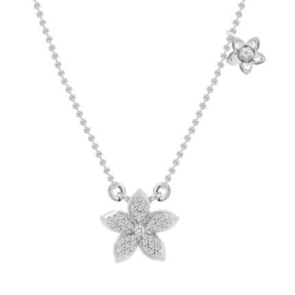 LADIES NECKLACE 0.10CT ROUND DIAMOND 14K WHITE GOLD