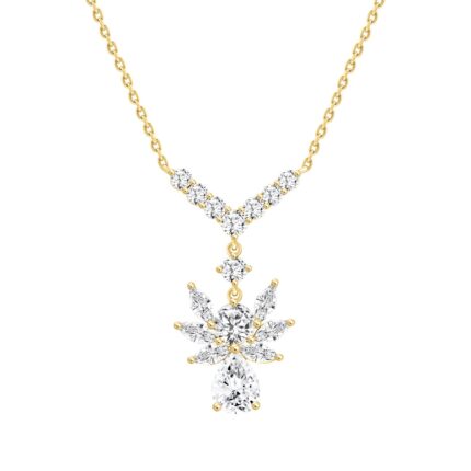 LADIES NECKLACE 3 3/4CT ROUND/PEAR/MARQUISE DIAMOND 14K YELLOW GOLD