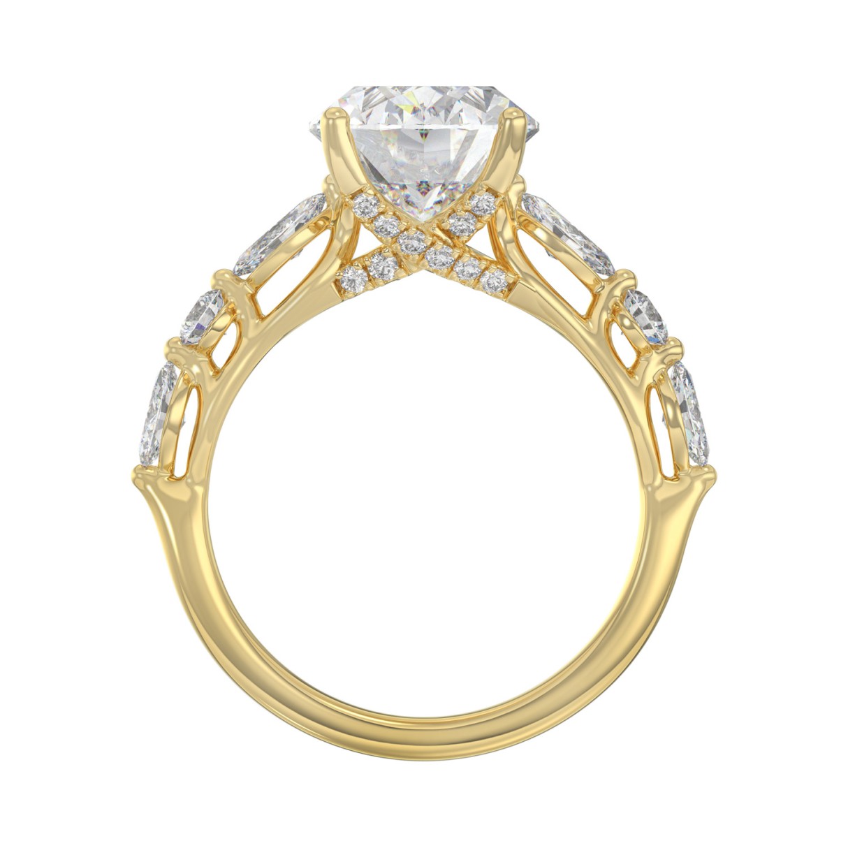 Elegant 14K Yellow Gold Bridal Fancy Ring for Ladies 3 3/4CT Round & Marquise& Oval Cut Diamonds 3.00CT Oval Center stone (Color F-G -Clarity