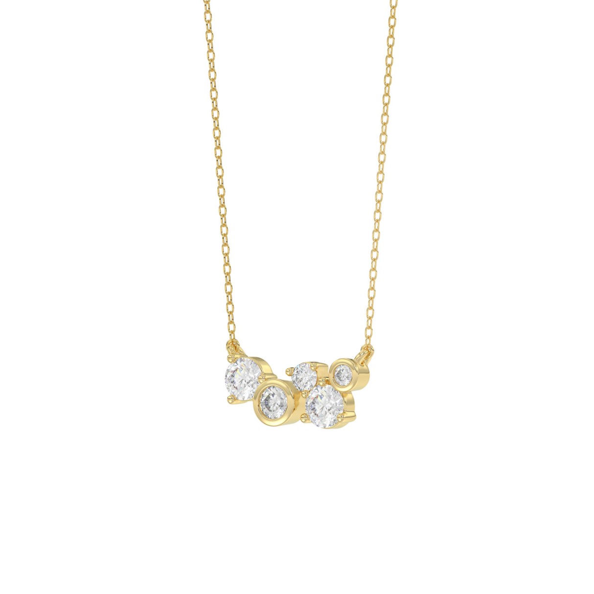 Elegant Ladies 10K Yellow Gold 1/2CT Round Lab Grown five stone Diamond Fancy Bezel set Necklace (Color F-G -Clarity VS1/VS2)