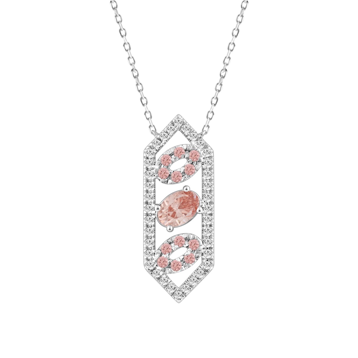 ETERNAL BLUSH COLLECTION 14K WHITE GOLD 1.00CT PINK ROUND DIAMOND /PINK OVAL DIAMOND LADIES NECKLACE