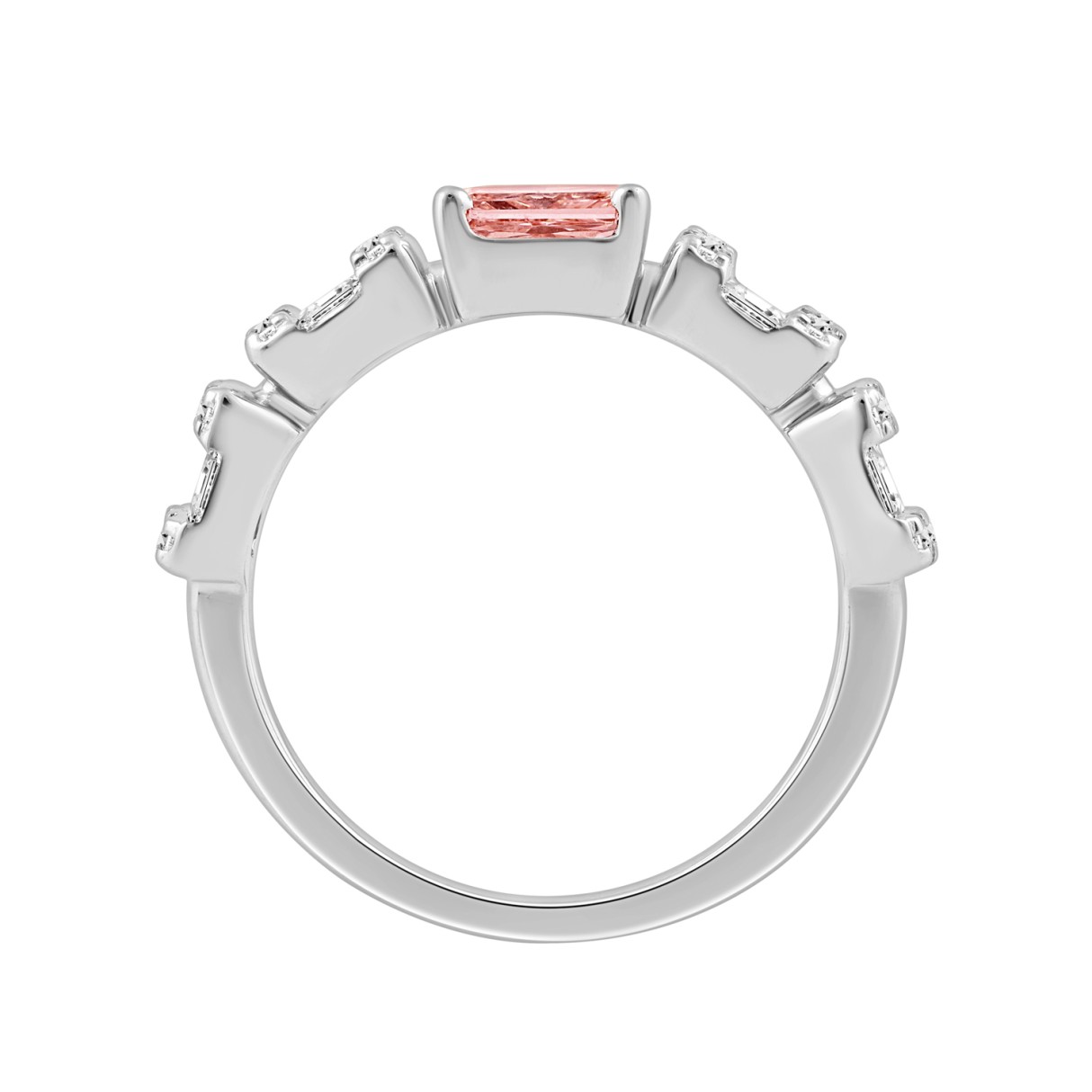 ETERNAL BLUSH COLLECTION 14K WHITE GOLD 1.00CT ROUND/BAGUETTE/ PINK RADIANT DIAMOND LADIES RING